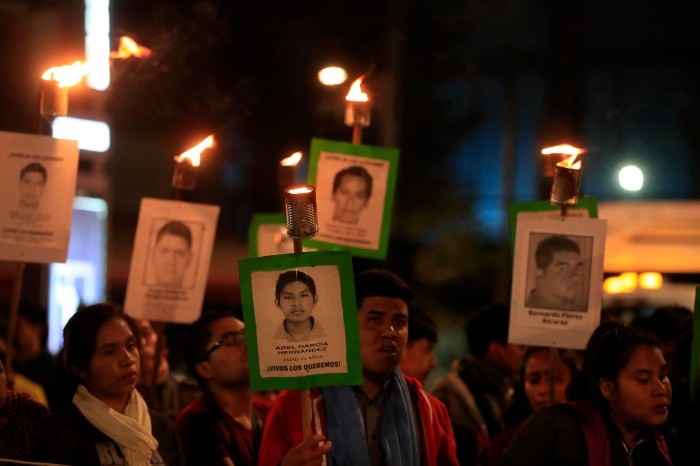 Con antorchas y carteles con la imagen de los 43 normalistas de Ayotzinapa, sus padres y organizaciones que los acompañan, se manifestaron la noche de este martes en el antimonumento ubicado en la avenida Paseo de la Reforma, como parte de sus acciones por los cuatro años de su desaparición.Con la petición de justicia y de encontrarlos con vida, y bajo el lema de "Ayotzi no está solo", los familiares de los estudiantes se instalaron en el antimonumento y bloquearon los carriles centrales de Paseo de la Reforma, a la altura del cruce con Bucareli.Una nueva tortuga de cristal con 43 tortugas en su caparazón, que representan a cada uno de los estudiantes de la Escuela Normal Rural "Raúl Isidro Burgos", fue testigo de sus exigencias, una noche antes del cuarto aniversario de la desaparición.Este miércoles, a las 10:00 horas, los padres de los estudiantes se reunirán con el presidente electo, Andrés Manuel López Obrador, con quien tratarán de fijar la hoja de ruta para la creación de una Comisión de la Verdad para el caso.Por la tarde, a las 16:00 horas, marcharán desde el Ángel de la Independencia hasta el Zócalo de la Ciudad de México, donde realizarán un mitin.JM