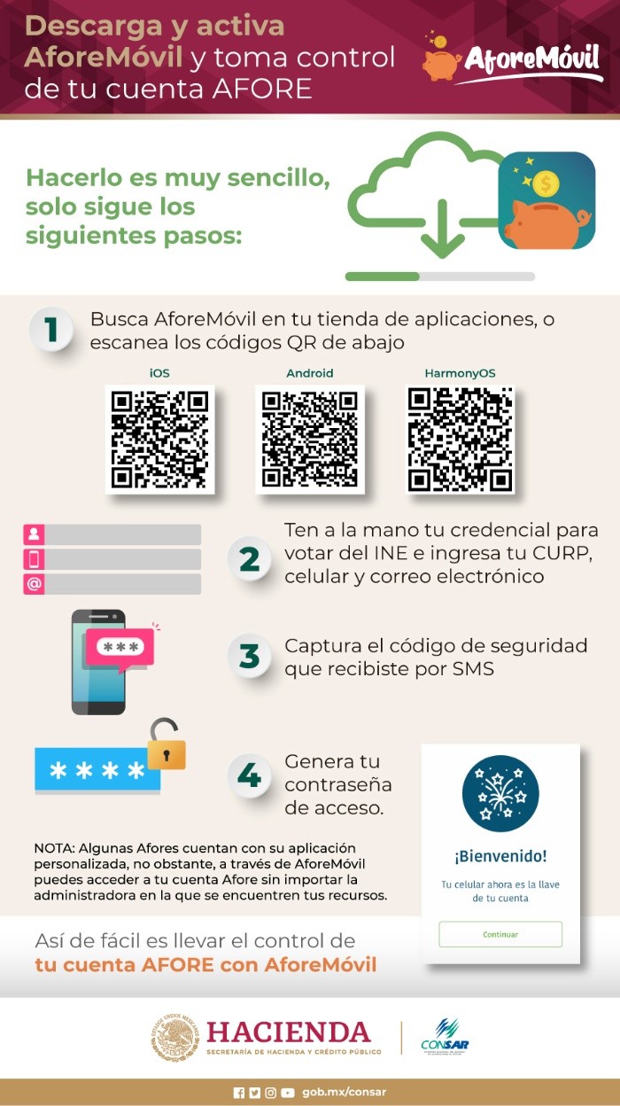 Hoy en día es de suma importancia mantener actualizada tu cuenta de Afore para cuando necesites realizar algún movimiento, aún estás a tiempo y forma de poner al corriente los trámites que se requieren.A finales de enero de este año fue necesario gestionar tu Firma Electrónica SAR como método de autenticación en la Solicitud de Traspaso dentro de la aplicación AforeMóvil (Autrotraspaso), esto no solo es necesario para garantizar la seguridad de tus datos, sino también para proteger tu información y para llevar a cabo este proceso, deberás establecer tu NIP y registrar tu biometría facial o dactilar.Será a partir del 24 de abril de 2024 cuando ya deberás tener tu Firma Electrónica SAR como medio de autenticación en el uso de cualquiera de los Servicios Presenciales que tu Afore ofrece para ti.La Firma Electrónica SAR se compone de NIP y tu biometría facial o dactilar.• NIP, es tu Número de Identificación Personal: Se conforma de cuatro dígitos numéricos mismos que no deberán ser iguales entre sí, ni deben ser consecutivos (ascendentes ni descendentes).• Biometría facial: Fotografía de tu rostro (selfie).• Biometría dactilar: Verificación y Autenticación de tus huellas dactilares.• Debes acudir a una sucursal de tu Afore donde te darán una clave temporal que tendrá una vigencia de 15 días hábiles.• Debes iniciar sesión en AforeWeb, selecciona la sección Mi perfil y luego Activación de NIP.• Ingresa la clave temporal y genera tu NIP personal. Este será tu clave de seguridad, no lo compartas.• Inicia sesión en AforeMóvil o AforeWeb para acceder al servicio que deseas utilizar.• Para identificarte con tu Firma Electrónica SAR, captura tu NIP y tu selfie.• Tu NIP te será útil para validar con tu Firma Electrónica SAR en diversos trámites en AforeMóvil, AforeWeb y en tu Afore.• Para identificarte en una sucursal de tu Afore podrás hacerlo a través de tu Firma Electrónica SAR.• Para hacerlo deberás proporcionar tu NIP y capturar tus huellas digitales o tomarte una selfie. EE