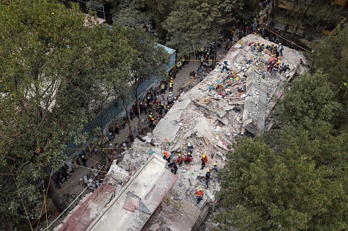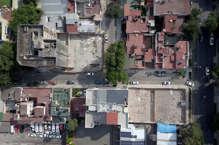 Seis meses después del sismo del 19 de septiembre en Ciudad de México, las labores de demolición en edicios dañados han concluido en algunos casos, dejando huecos más claramente visibles desde tomas aéreas.Las autoridades capitalinas determinaron la demolición de una treintena de edificios, además de centenares de viviendas, tras el temblor de 7.1 grados que dejó al menos 228 muertos en la capital.La Unidad Habitacional Tlalpan 1-CCalle Escocia, Colonia del ValleColegio Enrique RébsamenCalle Álvaro Obregón, Colonia Roma NorteTemplo de Nuestra Señora de los Ángeles, en la delegación CuauhtémocIM