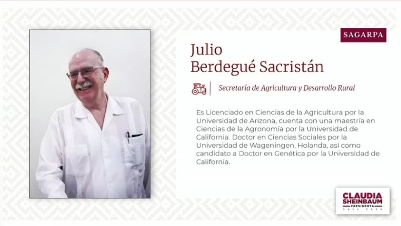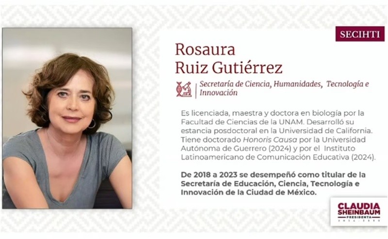 La virtual presidenta electa, Claudia Sheinbaum, presentó este jueves 20 de junio a los primeros seis integrantes de su gabinete presidencial para el periodo 2024-2030, tres hombres y tres mujeres entre los que se encuentran: Marcelo Ebrard, Rosaura Ruiz Gutiérrez, Juan Ramón de la Fuente Ramírez, Alicia Bárcena Ibarra, Julio Berdegué Sacristán y Ernestina Godoy Ramos. "Son mujeres y hombres de primera, me siento muy honrada de que hayan aceptado ser parte del segundo piso de la Cuarta Transformación", dijo Claudia Sheinbaum al anunciar que el próximo jueves presentará otros perfiles. El 1 de diciembre de 2018 asumió el cargo de Secretario de Relaciones Exteriores, con el presidente Andrés Manuel López Obrador. Durante 2009 presidió el Consejo Mundial de Alcaldes para la Acción Climática debido a su interés en los asuntos del cambio climático en su administración como Jefe de Gobierno.En 2006 asumió el cargo de jefe de Gobierno del Distrito Federal.De 2005 a 2006 se desempeñó como secretario de Desarrollo Social del Gobierno local del entonces Distrito Federal.Secretario de Seguridad Pública en la administración de Gobierno del Distrito Federal de López Obrador, de 2002 a 2004.En 1997 fue electo diputado federal de la LVII legislatura (1997-2000) por primera mayoría opositora al partido gobernante.Secretario General de Gobierno en 1992, durante la administración del entonces regente del Distrito Federal, Manuel Camacho Solís. Es una bióloga, catedrática, investigadora, académica y política mexicana. En 2018 y hasta 2023 ocupó el cargo de titular de la Secretaría de Educación, Ciencia, Tecnología e Innovación de la Ciudad de México, en el gabinete de la exjefa de gobierno, Claudia Sheinbaum. Ruiz Gutiérrez obtuvo su licenciatura, maestría y doctorado en Biología en la Facultad de Ciencias de la Universidad Nacional Autónoma de México (UNAM). Realizó una estancia posdoctoral en la Universidad de California (Irvine). Ha sido profesora invitada en la Universidad de California, así como en la Universidad del País Vasco.De 2010 a 2017 fue directora de la Facultad de Ciencias de la UNAM.De 2004 a 2010 fue secretaria de desarrollo institucional de la UNAM.De 2005 a 2010 ocupó el cargo como secretaria ejecutiva del Espacio Común de Educación Superior de México (ECOES).De 2008 a 2010 fue presidenta de la Academia Mexicana de Ciencias (AMC).Desde 2009 es asesora experta de la Organización de Estados Iberoamericanos (OEI) sobre educación y ciencia.De 2000 a 2004 fue directora general de Estudios de Posgrado de la UNAM.De 1989 a 1991 fue Coordinadora del Posgrado de Biología, en la Facultad de Ciencias.Es coautora de diversas publicaciones. Juan Ramón de la Fuente fue recientemente designado por Sheinbaum como encargado de coordinación del equipo de transición de gobierno.Es médico cirujano especializado en psiquiatría, profesor, escritor, investigador, diplomático y político mexicano.Fue representante de México ante la ONU en el sexenio de Andrés Manuel López Obrador, hasta 2023.En el sexenio del expresidente Ernesto Zedillo se convirtió en el secretario de Salud, hasta que presentó su renuncia y asumió la rectoría de la Universidad Nacional Autónoma de México (UNAM) desde 1999 y hasta 2007. Es licenciada en Biología y tiene estudios de Maestría en Ecología por la UNAM. Cuenta con una Maestría en Administración Pública por Harvard. Tiene 3 Doctorados Honoris Causa por la Universidad de Oslo, la Universidad de La Habana y la UNAM.Desde el 3 de julio de 2023, y hasta el 30 de septiembre de 2024, se desempeña como secretaria de Relaciones Exteriores en el gobierno del presidente Andrés Manuel López Obrador. Es licenciado en Ciencias de la Agricultura por la Universidad de Arizona, cuenta con una maestría en Ciencias de la Agronomía por la Universidad de California.Doctor en Ciencias Sociales por la Universidad de Wageningen, Holanda, así como candidato a Doctor en Genética por la Universidad de California. Es abogada por la Facultad de Derecho de la Universidad Nacional Autónoma de México (UNAM).En noviembre de 2018 fue nombrada titular de la Procuraduría General de Justicia (PGJ) de la Ciudad, y al transformarse en Fiscalía General de Justicia, asumió el cargo de enero de 2020 a enero de 2024. EE