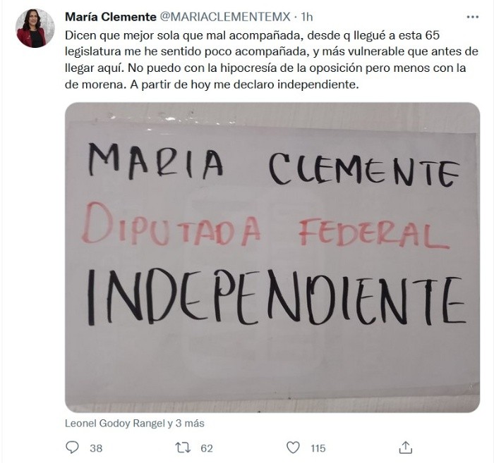 Una nueva confrontación entre el diputado panista Gabriel Quadri y legisladoras se suscitó, luego de que el primero llamara "señor" a la diputada transgénero Salma Luévano, lo que concluyó en la toma del pleno de la Cámara de Diputados, e incluso provocó que se llamara a receso.Durante el debate a una reforma en materia de salud mental, el diputado Quadri De La Torre interpuso una reserva a fin de prohibir que padres o tutores tomen decisiones con las intervenciones y procedimientos médicos relacionados con las juventudes trans."Estas decisiones deben de tomarse por el individuo sólo hasta que alcance la mayoría de edad, los menores de edad están expuestos a tomar con premura decisiones incorrectas con graves consecuencias para su salud", puntualizó.Tras su ponencia, la diputada de Morena, Salma Luévano, pidió el micrófono a fin de denunciar a Gabriel Quadri por violencia de género."Cuando hablamos de infancias trans no hablamos de medicamentos, hablamos de derechos, es un sinvergüenza asesino, tengo denuncias contra el señor por violencia de género", declaró."Hago notar que el señor Luévano me está amenazando", respondió el diputado albiazul.El comentario generó la molestia de la mayoría de las bancadas."Quiero advertir que el diputado Quadri llamó señor a una mujer. Una mujer trans, señor Quadri, es una mujer en este país porque ella así lo decidió, y en nuestro país uno tiene el derecho de tener el género que uno quiera, y es una falta de respeto hacia la compañera diputada dirigirse como señor, exijo su disculpa pública porque nos está faltando al respeto a todas las mujeres, todos los diputados y todos los mexicanos que hemos luchado por erradicar la discriminación", declaró la diputada priista Cynthia López.La legisladora de Morena, María Clemente, pidió juicio político: "Sometamos a juicio político a Gabriel Quadri y expulsémoslo del Congreso de la Unión, es inadmisible tener un sujeto que tiene problemas de salud mental como él, y que viene a reflejarlos en discursos de odio que cuestan vidas".Tras su comentario, María Clemente caminó hacia la curul de la presidencia, que en ese momento estaba ocupada por el diputado del PAN, Santiago Creel, y tomó el Pleno. Al hacerlo empujó a Creel Miranda y le arrebató el micrófono, por lo que se decretó un receso para calmar los ánimos. Después de 15 minutos, continuó la sesión.La diputada trans María Clemente, anunció que se convertirá en legisladora independiente.Lo anterior luego de que la morenista tomara el Pleno de sesiones y agrediera con empujones al presidente de la Mesa Directiva en funciones, Santiago Creel, para manifestarse contra comentarios transfóbicos que realizó el diputado del PAN, Gabriel Quadri."Dicen que mejor sola que mal acompañada, desde q llegué a esta 65 legislatura me he sentido poco acompañada, y más vulnerable que antes de llegar aquí. No puedo con la hipocresía de la oposición, pero menos con la de morena. A partir de hoy me declaro independiente", declaró la legisladora en su cuenta de Twitter.JM