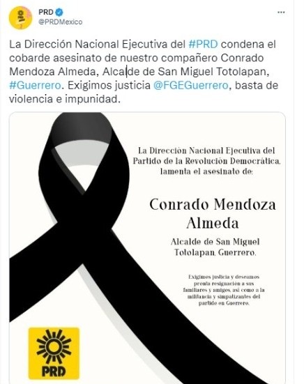 La tarde de este miércoles se reportó un ataque al Ayuntamiento de San Miguel Totolapan, Guerrero.En la agresión fue asesinado Conrado Mendoza Almeda, alcalde de San Miguel Totolapan, según confirmó la Dirección Nacional Ejecutiva del PRD en redes sociales."La Dirección Nacional Ejecutiva del PRD condena el cobarde asesinato de nuestro compañero Conrado Mendoza Almeda, Alcalde de San Miguel Totolapan, Guerrero. Exigimos justicia, basta de violencia e impunidad".De acuerdo con los primeros reportes, el grupo criminal Los Tequileros habría sido la organización criminal responsable. En redes sociales circulan imágenes de la fachada del Ayuntamiento de San Miguel Totolapan, en las que se puede observar diversos impactos de bala.Hasta el momento, ni la Fiscalía de Guerrero ni la gobernadora Evelyn Salgado han dado infromación oficial.