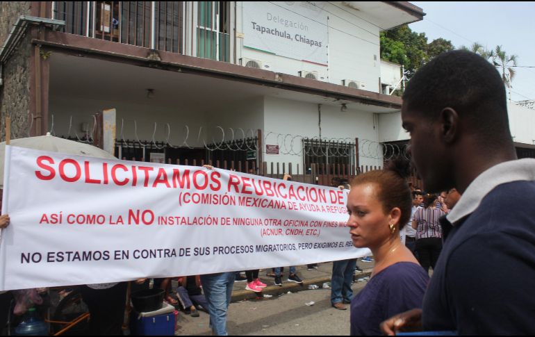 Vecinos de Tapachula protestaron ayer para exigir la reubicación de un edificio de la Comisión Mexicana de Ayuda a Refugiados (Comar).Los habitantes inconformes extendieron una lona de seis metros a la salida de este organismo —que se encarga de tramitar y analizar las solicitudes de refugio de migrantes— pidiendo que esta oficina cambie de lugar.La representante de los vecinos, Verónica Ortiz, señaló que entregaron un oficio a la delegada de la Comar en el estado de Chiapas, Alma Delia Cruz, en el que exponen su descontento.Los vecinos alegaron que los migrantes que acuden a realizar este trámite han causado molestias en el vecindario."No estamos en contra de sus procesos migratorios pero exigimos el respeto a nuestros derechos", se podía leer en una manta extendida por cinco convecinos.Los afectados indicaron que, con la presencia de migrantes ha aumentado la delincuencia, la basura —platos, vasos, botellas, pañales y restos de comida— y, por ende, han empeorado las condiciones de salubridad."Los migrantes hacen sus necesidades fisiológicas en la vía pública sin importar la hora, se dedican a consumir bebidas embriagadoras, estupefacientes y realizar relaciones sexuales impidiendo el libre acceso a nuestras viviendas", dijo la portavoz.Otra de las quejas fue que los migrantes utilizan los portones y ventanas de tendederos de ropa y, cuando se les invita a no hacerlo, reaccionan de manera violenta.En un documento que se entregó al personal de la Comar se le solicita al presidente López Obrador, a la secretaria de Gobernación, Olga Sánchez Cordero, y al titular de la Comar en México, Andrés Ramírez Silva, que tomen en cuenta la petición de los vecinos.