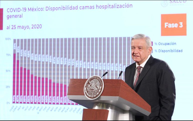 El Presidente de México, Andrés Manuel López Obrador, refirió este miércoles que en la Ciudad de México, foco rojo de la pandemia, "hay indicios" de que se va a empezar el descenso de los contagios por coronavirus."En el caso de la Ciudad de México, estamos en el pico, es la meseta y hay indicios de que ya vamos a empezar al descenso, aún con lo de ayer que se acumularon muchos fallecimientos", señaló el mandatario durante su conferencia mañanera desde Palacio Nacional.La declaración se da luego de que el martes por la noche México reportara su día con más muertes con 501 y también con un récord de contagios por COVID-19 con tres mil 455 en las últimas 24 horas.López Obrador dijo que el aumento en el número de muertes "tiene que ver con un procedimiento médico que tiene que ver con la causa de los fallecimientos" aseveró.El martes, Jorge Alcocer, secretario de Salud, ya había dicho que era "esperable" que el número de fallecidos por complicaciones de COVID-19 en las últimas 24 horas superara los 500 ya que se confirmaron casos sospechosos."Es un poco mayor la cifra, pero era esperable", afirmó.Pese a ello, López Obrador reiteró que en el caso de la Ciudad de México, donde se ha registrado el mayor número de contagios en el país, "el reporte que tenemos es que hay disminución en la ocupación de camas, hospitales y terapia intensiva. Vamos bajando, pero tenemos que estar muy pendientes".Recordó que ahora se ha podido avanzar "porque se tomaron medidas a tiempo" y resaltó la importancia de la sana distancia.Además, dijo que hasta ahora, el país tiene una ocupación hospitalaria de 34% de ocupación, por lo que hay 66 % de disponibilidad "se ha estado trabajando para que no tengamos saturación y nos rebase, ahí vamos", apuntó.Hasta el momento, México acumula ocho mil 134 decesos y 74 mil 560 casos confirmados desde el principio de la pandemia.El Presidente adelantó que, a reserva de la reunión de evaluación de la pandemia de las autoridades sanitarias este jueves, la siguiente semana estaría regresando a sus giras por el país."Se acordó tener otra reunión evaluatoria el jueves y el viernes se va a presentar la propuesta para la etapa que sigue", afirmó.Adelantó que, de ser aprobado, tiene como plan empezar el martes 2 de junio una gira por el sureste del país para dar el banderazo de inicio de las primeras etapas de construcción del Tren Maya."El martes en Cancún en la mañana, llevaríamos a cabo reunión de seguridad, de 6 a 7 de la mañana, y la conferencia de prensa de 7 a 8 en Cancún y ese mismo día, vamos a dar banderazo para inicio del primer tramo de Tren Maya que va de Cancún a Valladolid", manifestó.Indicó que la gira continuará esa semana por Mérida, Campeche, Villahermosa en Tabasco y Coatzacoalcos, Veracruz, donde dará los banderazos del Tren Maya y supervisará los trabajos de las refinerías de Dos Bocas, de Minatitlán y del Tren del Istmo.Señaló que solamente tomará un avión para llegar a Cancún y que se pondrá el cubrebocas en caso de que la aerolínea lo exija mientras que el resto de la gira lo hará vía terrestre ya que así lo han recomendado sus doctores.Pidió a los pobladores de las localidades que abarcará su gira que no se aglomeren ya que debido a las medidas de sana distancia no se pueden hacer reuniones de más de 50 personas.NR