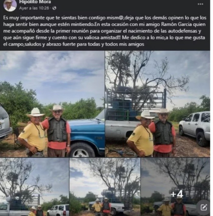 El fundador y exlíder de las autodefensas de Michoacán, Hipólito Mora, fue asesinado hoy al mediodía junto con sus escoltas en un intenso ataque armado en su contra en la localidad de La Ruana, municipio de Buenavista.Hipólito Mora publicó un último mensaje antes de su asesinato a través de la cuenta Hipólito Mora en Facebook. En su publicación celebró el nacimiento de las autodefensas, “que aún sigue firme”, junto a su amigo Ramón García, a quien reconoció por mantenerse a su lado.“Me dedico a lo mío, a lo que me gusta. Saludos y abrazo fuerte para todas y todos mis amigos”, fueron las últimas palabras del exlíder autodefensa publicadas en redes sociales, acompañadas con un par de fotografías en las que aparece, con una sonrisa, trabajando en el campo.El exlíder de las autodefensas mandó un mensaje a quienes lo leían y recomendó a todos sentirse bien consigo mismos, a la par de dejar que las personas alrededor opinen lo que consideren correcto. Dejó en claro que seguía dedicándose al campo, lo que calificó como una actividad propia.“Es muy importante que te sientas bien contigo mism@, deja que los demás opinen lo que los haga sentir bien aunque estén mintiendo. En esta ocasión con mi amigo Ramón García quien me acompañó desde la primer reunión para organizar el nacimiento de las autodefensas y que aún sigue firme y cuento con su valiosa amistad!! Me dedico a lo mío ,a lo que me gusta el campo, saludos y abrazo fuerte para todas y todos mis amigos”, se pudo leer.Días antes, Hipólito Mora publicó un video en otra cuenta de Facebook a su nombre Hipólito Mora Chávez, a través del que hizo un llamado a las autoridades para controlar la situación de violencia y combatir al crimen organizado en La Ruana.Según lo que comentó, aumentaron algunos delitos en la comunidad como el cobro de piso, extorsión, así como el control de los productos que son propiedad de los habitantes, pero que toman como suyos los integrantes del crimen organizado.“Estoy deseando que vengan las autoridades y terminen, de una vez, con tanto cobro de piso, tanta extorsión, que tienen controlado todos los productos y, la verdad, nos tienen muy mal a todo el pueblo de La Ruana, no nos dejan trabajar y lo que trabajamos es para el crimen organizado”, refirió el pasado 22 de junio.CR