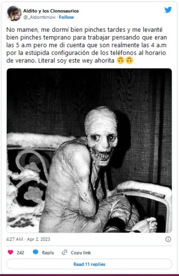 Este domingo 2 de abril debió aplicarse el horario de verano en México; no obstante, esta medida ya no se realizará tras su aprobación en las Cámaras de Diputados y Senadores, así como la publicación del decreto en el Diario Oficial de la Federación.El cambio no se debió realizar; sin embargo, muchos celulares le jugaron una mala pasada a usuarios y cambiaron automáticamente al horario de verano adelantando una hora, lo que generó confusión, prisas, llegadas temprano al trabajo y, por supuesto, muchos memes.Varias personas que sí estuvieron atentas al cambio de hora en sus dispositivos vieron que sí se aplicaba a medianoche, mientras que otros aparatos no lo hacían, lo que generó un extenso debate en Twitter, así como críticas al Gobierno federal por su "engaño".Al poco tiempo comenzaron a surgir post de personas y empresas tecnológicas que recomendaban ajustar la configuración del sistema para cambiar la hora de forma manual y así evitar contratiempos; no obstante, divertidos memes publicados por cibernautas dieron cuenta de la confusión que reina durante las primeras horas de este domingo.JM
