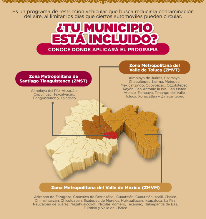 El programa Hoy No Circula limita la circulación de los autos en función del último dígito de la placa y el color del engomado, con el objetivo de prevenir, minimizar y controlar la emisión de contaminantes a la atmósfera de la Zona Metropolitana del Valle de México. Recuerda que desde el pasado lunes 1 de julio el Hoy No Circula tiene modificaciones; pues entró en vigor en las zonas metropolitanas del Valle de Toluca y de Santiago Tianguistenco en el Estado de México, por ello aquí te explicamos todo lo que tienes que saber al respecto.Según el informe más reciente del Sistema de Monitoreo Atmosférico de la Ciudad de México (CDMX), con corte a las 16:00 horas, la calidad del aire en la capital del país y la zona conurbada es buena por lo que los niveles de contaminación no son lo suficientemente altos como para activar la contingencia ambiental.En ese sentido para el miércoles 2 de julio de este 2025 el programa Hoy No Circula aplica de forma habitual para los siguientes autos en la Ciudad de México (CDMX) y el Estado de México (Edomex):Mientras que los autos con los hologramas 00 y 0 están exentos de las limitaciones establecidas en el programa, así como los vehículos eléctricos e híbridos.Para que mañana puedas tomar tus precauciones, te recordamos que el horario del Hoy No Circula es desde las 5:00 de la mañana a las 10:00 de la noche, sin embargo, para los automóviles con placas foráneas, la restricción será de 5:00 a 11:00 horas.A partir del martes 1 de julio de 2025, el programa se amplió con la inclusión de nuevos municipios del Estado de México.NA