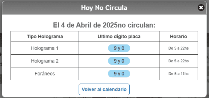 El programa Hoy No Circula limita la circulación de los autos en función del último dígito de la placa y el color del engomado, con el objetivo de prevenir, minimizar y controlar la emisión de contaminantes a la atmósfera de la Zona Metropolitana del Valle de México. Según el informe más reciente del Sistema de Monitoreo Atmosférico de la Ciudad de México (CDMX), con corte a las 16:00 horas, la calidad del aire en la capital del país y la zona conurbada es aceptable, lo cual indica un riesgo moderado, por lo que los niveles de ozono no son lo suficientemente altos como para activar el Doble Hoy No Circula.En ese sentido, para mañana viernes 4 de abril del 2025 los siguientes autos descansan en la Ciudad de México (CDMX) y el Estado de México (Edomex): Mientras que los autos con los hologramas 00 y 0 están exentos de las limitaciones establecidas en el programa, así como los vehículos eléctricos e híbridos.Para que mañana puedas tomar tus precauciones, te recordamos que el horario del Hoy No Circula es desde las 5:00 de la mañana a las 10:00 de la noche, sin embargo, para los automóviles con placas foráneas, la restricción será de 5:00 a 11:00 horas.El Hoy No Circula aplica en las 16 alcaldías de la CDMX y en 18 municipios de Edomex:NA