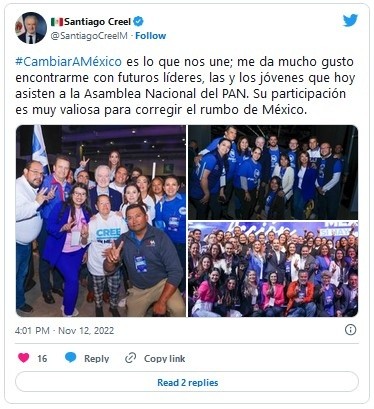 El presidente de la Mesa Directiva de la Cámara de Diputados, Santiago Creel Miranda, dijo que en caso de que se apruebe en esa instancia legislativa la reforma electoral del Presidente Andrés Manuel López Obrador, que pretende apropiarse del INE, se topará con la Suprema Corte de Justicia de la Nación (SCJN).En entrevista en el marco de la XXV Asamblea Nacional Ordinaria del PAN, apuntó: "No queremos un árbitro electoral del Presidente Andrés Manuel López Obrador, no queremos que el Presidente se quede con el árbitro, con la cancha, con los jugadores y con su estadio, eso no es democracia, Presidente".Sin embargo, confió en que la propuesta presidencial sea rechazada por la oposición, porque todas sus intervenciones, a propósito del presupuesto, fueron en contra de una reforma que toca al INE."Si eso se sostiene, es imposible que se dé una reforma constitucional, podrán pasar reformas legales, pero que se acuerden muy bien: si pasan una reforma legal en constitucional, no va a pasar porque se va a topar con la Suprema Corte de Justicia de la Nación", dijo en el evento realizado en el Centro de Convenciones Banamex.El diputado federal del PAN vaticinó: "Seguro va a llegar a la Corte, yo no tengo la menor duda porque Morena no sabe de derecho constitucional, no le importa la Constitución, pisotea la Constitución como lo hace el presidente todos los días y, en consecuencia, acabará en la Corte como han acabado todas sus reformas".Y añadió: "El objetivo es que el Instituto Nacional Electoral no se toque, que el INE se fortalezca en su autonomía, en su independencia, que el INE no se toque en su integración. Queremos al árbitro electoral completo, un árbitro electoral neutral, imparcial, un árbitro que pueda seguir avanzando en la democracia del país".Sobre la marcha de este domingo, indicó que "mañana vamos a demostrar la fuerza que tenemos, porque yo les quiero recordar algo que vale la pena subrayar: en la elección del 2021, toda la oposición, en conjunto, sacamos 23 millones de votos, en tanto, la coalición de Morena sacó 21 millones de votos"."Quiere decir que somos muchos más los que estamos en contra de este régimen que ya tiene rasgos autoritarios muy peligrosos, rasgos como el que quieren acabar con el INE", agregó.JM
