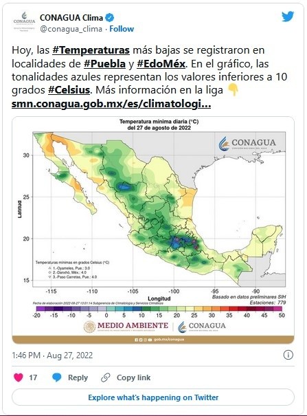 Aunque podría pensarse que los frentes fríos son propios del invierno no es así. En pleno verano, México podría tener su primer frente frío de la temporada 2022-2023... Pero antes, ¿qué es el frente frío?El frente frío es la parte delantera de una masa de aire polar, la cual provoca un descenso en la temperatura en la zona por donde pasa.Este se forma cuando una masa de aire frío choca con una masa de aire caliente, pues al ser más denso, el aire frío se mete como una cuña debajo del aire caliente, lo que genera movimiento y provoca inestabilidad en la atmósfera de esa zona.Durante este fenómeno se presentan descensos de temperatura, heladas, vientos intensos, fuerte oleaje, abundante nubosidad y lloviznas.Aunque hay varias versiones que circulan en Internet en las que se menciona que el primer frente frío de 2022-2023 entrará el 1 de septiembre próximo, lo cierto es que la Comisión Nacional del Agua (Conagua) no ha dado esa fecha como la exacta sobre ese fenómeno.En el mapa de los sistemas meteorológicos actuales sólo se aprecia la presencia de un frente estacionario, diferente a un frente frío, en la versión de las 10:00 horas.A pesar de ello, hoy sábado por la mañana se presentaron temperaturas de 0 a 5 grados en el Valle de México, en el Estado de México, según la misma Conagua.Es así que, aunque no se confirma el primer frente frío por parte de autoridades, sí es un hecho que en algunas partes del país ya han comenzado a descender.JM