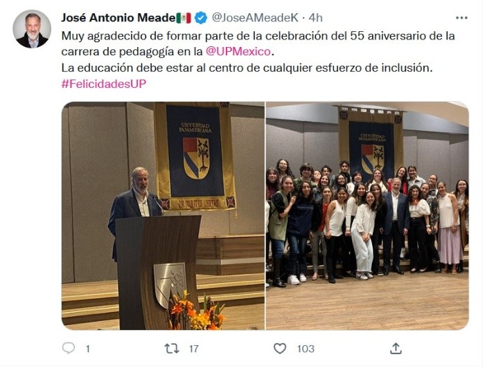 El excandidato presidencial por el Partido Revolucionario Institucional (PRI), José Antonio Meade, aseguró que "(...) casi el 85% de los que murieron de COVID-19 en estos últimos dos años, no concluyeron la educación media superior"; asimismo, agregó que quien termina la preparatoria tiene cinco años más de vida que quien no la finaliza."Esto quiere decir que la vida de quien no termina la prepa es tan dura, que se va a morir más joven. Cinco años de esperanza de vida, a México le toma más o menos 20 años generarlo. Para perder cinco años de esperanza de vida, es como si en vez de haber nacido en 2022, lo hubiéramos hecho en mil novecientos noventa y tantos. Esa es la diferencia entre cinco años de esperanza de vida", dijo.Al participar en la celebración del 55 aniversario de la carrera de Pedagogía en la Universidad Pedagógica Nacional (UPN), el exfuncionario público sostuvo que la educación es un derecho fundamental para acceder a mejores condiciones de vida.Aseguró que en el país existen 44 millones de adultos que no han terminado la preparatoria, por lo que dijo que existen dos retos: que los que están en edad de estudiar la educación media superior, "no los perdamos y a quienes perdimos, hay que encontrar la forma para dar con ellos y darles los elementos educativos para poderlos incorporar en las oportunidades que un país como México ofrece".Meade precisó que para que en México se aspire a que los jóvenes concluyan la preparatoria hay que empezar por la educación temprana."Las posibilidades de que yo termine la prepa está muy relacionada con si asistí o no, a preescolar. Los hábitos alimenticios se forman en preescolar. El mexicano que es obeso en el jardín de niños, probablemente lo sea toda su vida. El mexicano que asiste al preescolar tiene el 17% más de probabilidades de terminar la preparatoria", indicó.JM