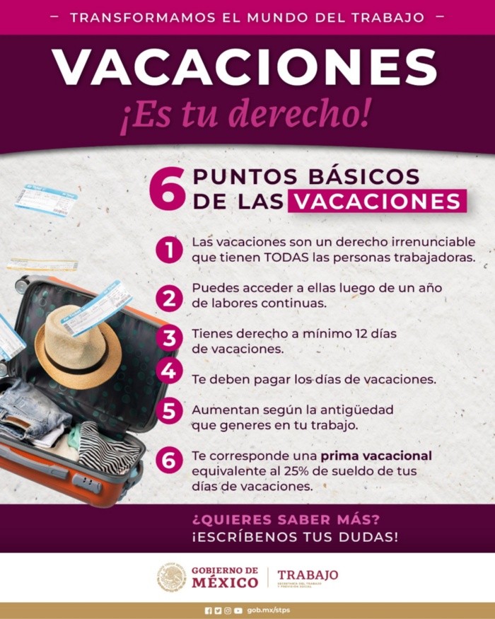 Dentro de la Ley Federal del Trabajo, se establece el derecho de las y los trabajadores de México a que se les pague una prima vacacional, con la que se busca asegurar un descanso digno durante las vacaciones de los empleados formales del país. La prima vacacional, es un beneficio adicional al salario por mes de las y los trabajadores y se calcula con base a su sueldo y su tiempo de servicio en sus respectivas empresas.Para conocer cuánto debe pagarte tu empresa por la prima vacacional, necesitas saber cuál es tu sueldo diario, si por alguna razón desconoces este dato, solo necesitas dividir el monto total de tu sueldo mensual entre los 30 días del mes.Posteriormente con la cantidad de tu sueldo por día debes multiplicarla por tus días de vacaciones, después se aplica un 25 por ciento.En otras palabras, por ejemplo, si ganas 11 mil pesos al mes, tienes el derecho de mil 400 pesos de prima vacacional después de tu primer año laborando, esto con base en los 12 días de vacaciones estipulados por la ley. Cabe recordar que la reforma de los artículos 76 y 78 de la Ley Federal del Trabajo logró cambiar de seis a 12 días de vacaciones a partir del año laborado y entró en vigor desde el 1 de enero de 2023.Dicha reforma establece, que después del primer año de trabajo, se aumentarán dos días por año durante los siguientes cinco años, hasta llegar a los 20 días de vacaciones. Después del sexto año de trabajo el periodo vacacional aumentará dos días cada cinco años. NA