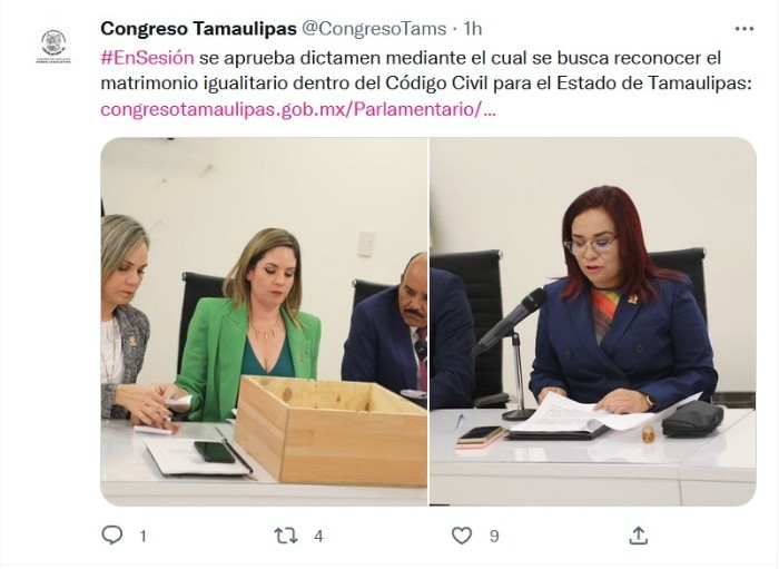 El Congreso de Tamaulipas aprobó este miércoles las reformas que dan legalidad a los matrimonios entre personas del mismo sexo, conocidos como igualitarios, con lo que los este enlace ya es legal en los 32 estados que conforman México.Con 23 votos a favor, 12 en contra y una abstención, fue aprobada la iniciativa presentada por la diputada Nancy Ruiz, quien previamente ya la había presentado cuando pertenecía a Morena, pero el 15 de mayo de este año el Pleno había rechazado la propuesta.Tras la decisión del Congreso de Tamaulipas, ya no falta ningún estado por cambiar sus Códigos Civiles y hacerlos acordes a los fallos de la Suprema Corte de Justicia de la Nación (SCJN), que de manera reiterada ha fallado por la constitucionalidad de la reforma.Apenas hace unas horas, el Congreso del estado de Guerrero aprobó este martes por mayoría de votos las reformas que dan legalidad al matrimonio igualitario.Con esta resolución, Tamaulipas se convierte en la número 32 del país en reformar el Código Civil que permite el matrimonio entre personas del mismo sexo.Hace dos días, el Congreso de Tabasco aprobó también las reformas para el matrimonio igualitario y apenas el pasado 11 de octubre el Estado de México se convirtió en la entidad número 29 en aprobar los matrimonios igualitarios.JM