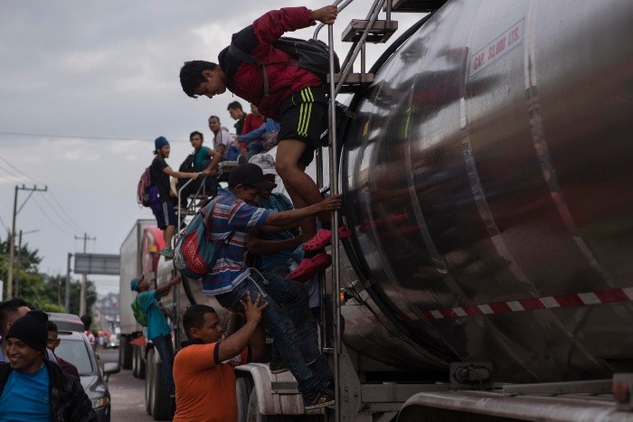 "¡Ahí vienen!", avisaron en la comunidad de Aguilera, en Sayula de Alemán, uno de los 212 municipios de Veracruz, cuando vieron un tráiler en el que viajan migrantes centroamericanos que se dirigían hacia Acayucan.Desde las 9:00 horas de este viernes se anunció en una de las bocinas que tiene la comunidad que los migrantes pasarían por esta zona y se invitó a salir a las calles con ayuda.La caravana de migrantes, de último momento, tomó la decisión de no hacer parada como se tenía previsto en comunidad de Donají, del municipio Matías Romero, en Oaxaca, sino seguir hasta Acayucan.Se cumplieron 22 días de que salieron desde San Pedro Sula, Honduras, en busca del "sueño americano"; continuaron su camino hasta Guatemala y de ahí ingresaron a México por Chiapas, y desde la semana pasada estaban en territorio oaxaqueño.Entre el jueves y viernes se notó una mayor desorganización en la caravana, al grado de no respetar las indicaciones de los coordinadores, además dominaba la desesperación de unos por llegar a la frontera y de otros por estar en la Ciudad de México.Desde la tarde de este viernes pedían aventones para llegar hasta Acayucan y algunos lo hacían caminando. A su paso por Aguilera, los habitantes los recibían con bolsas de agua y comida y ellos agradecían con saludos y sonrisas."Ellos también son seres humanos", "México también tiene inmigrantes", "Son nuestros hermanos", "Aunque nos quedamos sin nada", eran algunas de las tantas frases que pronunciaban en esta comunidad.En la cabecera municipal de Sayula de Alemán se había instalado un cúmulo importante de centroamericanos que decidieron descansar antes de seguir; otros señalaban que permanecerían aquí.De acuerdo con el Alto Comisionado de las Naciones Unidas para los Refugiados (ACNUR), cada vez más centroamericanos huyen de sus países por la violencia, ya que sólo en 2017 más de 294 mil solicitaron asilo y refugio, lo que representó 16 veces más que en 2011.JM