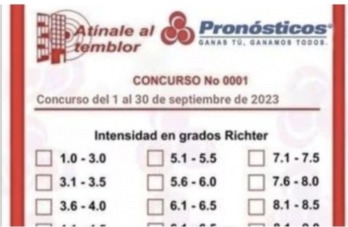 Durante el mes de septiembre, muchos habitantes de la Ciudad de México viven con el miedo de que se registren temblores en la capital, tal como ha sucedido en los últimos años dejando personas fallecidas y varias afectaciones en hogares y edificios. Incluso el pasado 28 de agosto se registraron dos temblores en los estados de Oaxaca y Chiapas, al igual que en Magdalena Contreras, Ciudad de México aunque de menor intensidad.Pero al parecer también existen algunos cuantos han tratado de aliviar la tensión del tema de los sismos, a tal grado que en las redes sociales comenzaron a circular un especie de sorteo entre las personas en donde debes dar tu pronóstico.En una de las imágenes que circula en las redes sobre el sorteo, se puede apreciar que debes rellenar las preguntas de cuánto será la magnitud del temblor, en dónde será el epicentro y cuántas réplicas habrá. Han sido específicamente tres temblores los que han dejado una marca indeleble en el país, principalmente en la Ciudad de México. El primero de ellos fue el del año de 1985 el cual tuvo una magnitud de 8.1 y dejó más de miles de personas muertas y heridas, además de que muchas de ellas se quedaron sin hogar. El segundo terremoto sucedió en el año 2017 con una magnitud de 7.1, en donde también dejó varios daños significativos similares a los del 85, dejando también a varias personas muertas y heridos. El último de ellos fue en el 2019 con magnitud de 7.0, aunque en esa ocasión no se presentaron daños en la capital ni en ningún otro punto del país.MF