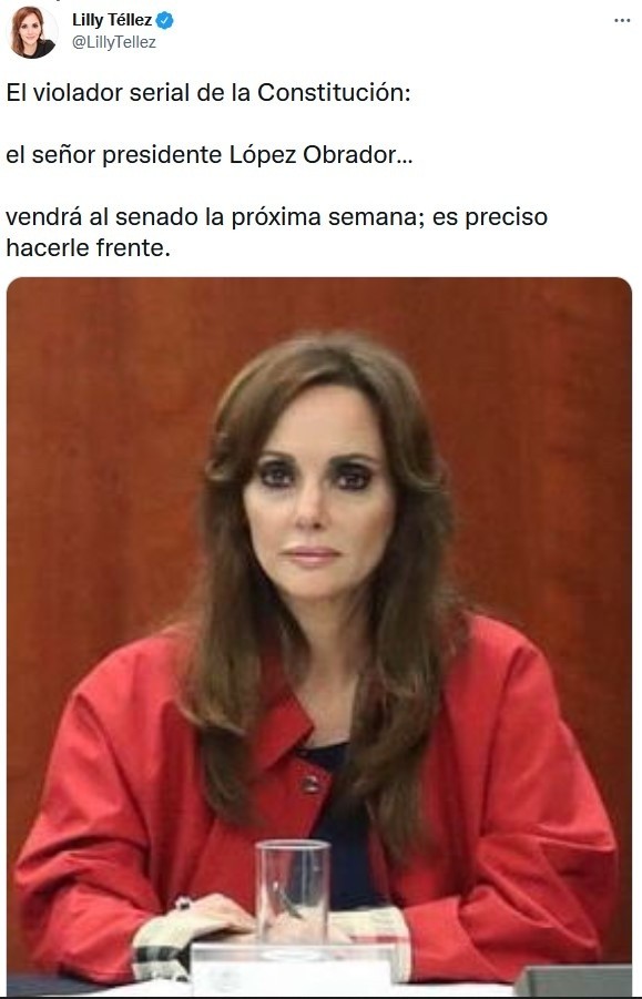 El pasado 1 de octubre la senadora Lilly Téllez compartió un tuit en el que dijo que el presidente López Obrador acudiría al Senado, por lo era preciso hacerle frente.