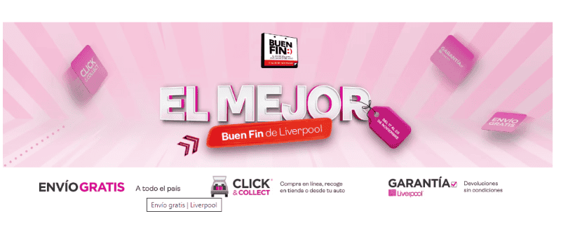 El Buen Fin es uno de los eventos más esperados del año en todo México. Durante estos días, todos los establecimientos participantes podrán encontrar todo lo que necesitan y lo que no sabían, también. Así que si eres fan de Liverpool y te gusta la distinta mercancía que hay en esta tienda departamental, checa estos descuentos que tendrán durante el Buen Fin 2023.Empecemos aclarando que el Buen Fin se llevará a cabo a partir del viernes 17 hasta el lunes 20 de noviembre. Durante este fin de semana, los consumidores podrán disfrutar de grandes ofertas y precios bajos en múltiples marcas de ropa y calzado, telefonía, muebles, transporte, viajes, electrodomésticos y muchas cosas más.En el caso de Liverpool, los usuarios podrán acceder a grandes promociones en sus múltiples departamentos como electrónica, belleza, muebles, hogar, zapatos, deportes, videojuegos y más. Sin embargo, las ofertas correspondientes al Buen Fin se publican en el momento en que comienza oficialmente este evento económico; pero, si nos basamos en las ediciones pasadas, podemos darnos una ligera idea de lo que podría haber:Además, la tienda ofrece realizar los pagos a meses sin intereses con algunas tarjetas de crédito, así como envíos gratuitos a toda la República Mexicana.En Liverpool podrás disfrutar de los descuentos del Buen Fin en horario regular de las tiendas: 11 am a 9pm. Además, puedes descargar la app Liverpool Pocket, donde encontrarás los mismos descuentos que en tienda mediante un simple click en tu celular.Si no te quieres perder ningún breaking, únete a nuestro canal de WhatsApp.MM