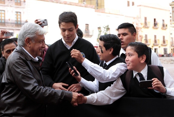 El presidente electo, Andrés Manuel López Obrador, sostiene un encuentro con el gobernador Alejandro Tello Cristerna, con quien conversa sobre el programa que la próxima administración federal aplicará para el beneficio de la entidad.López Obrador arribó minutos después de las 10:00 horas al Palacio de Gobierno de este estado acompañado por el próximo titular de la Secretaría de Comunicaciones y Transportes (SCT), Javier Jiménez Espriú, y del senador Ricardo Monreal Ávila.Al llegar, escuchó las distintas demandas de la población, al tiempo que las personas que lo esperaban aprovecharon su arribo para saludarlo y tomarse fotografías, así como para manifestar su apoyo.Al llegar al Palacio de Gobierno del estado para reunirse con el gobernador Alejandro Tello, una mujer se acercó para gritar "nos están matando señor presidente, necesitamos que nos escuche, necesitamos una política pública efectiva, la alerta de género no sirve para nada en ningún estado señor presidente".López Obrador le respondió que ya les entregaron un documento y se va a atender.También Sebastián Soriano Soriano, un ex militar en silla de ruedas, le pidió apoyo porque lo deslindaron del Ejército sin darle las prestaciones de ley.Mientras tanto, llegó con el coordinador de los senadores de Morena, Ricardo Monreal; así como el próximo titular de la Secretaría de Comunicaciones y Transportes, Javier Jiménez Espriú y el futuro subsecretario de Ganadería, David Monreal.Tras el encuentro, el presidente electo realizará un mitin en el centro de Zacatecas. Luego de esta reunión, López Obrador tendrá un acto público como parte de la gira de agradecimiento, programado para las 11:30 horas en la Plazuela Miguel Auzúa y posteriormente se dirigirá al estado de Aguascalientes.En esa entidad, el presidente electo también tendrá un acercamiento con el gobernador Martín Orozco Sandoval, y otro evento masivo como parte de la gira de agradecimiento, a las 17:00 horas.Con información de SUN y NTXAC