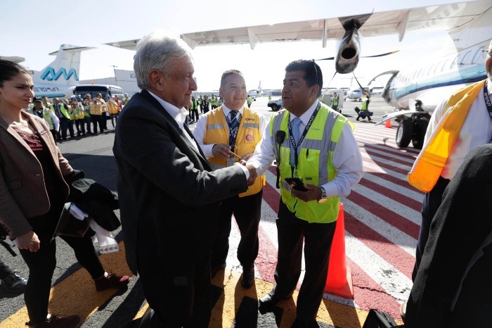 En entrevista a medios en el aeropuerto de la Ciudad de México para tomar su primer vuelo comercial a Veracruz ya como Presidente de la República, Andrés Manuel López Obrador dijo que el primer sentimientos que tuvo en la investidura fue "responsabilidad".Dijo que hoy domingo por la mañana recibió el primer parte de seguridad como Presidente y detalló que "no es que no haya delitos, pero no hubo nada extraordinario".Aunque no quiso hablar de temas políticos, el Presidente sí dijo que son buenas noticias que el equipo de futbol de los Pumas pasaron a la siguiente ronda de la liga.En el aeropuerto de la Ciudad de México, fue recibido por personas que le pedían "selfies", mientras que directores de Aeromar lo acompañaron en su primer vuelo como presidente hacia Veracruz, incluso ya en el avión el capitán Israel Sarabia le dio la bienvenida a través del audio de la aeronave y los pasajeros respondieron con aplausos.El Presidente viaja con la ayudantía, encabezada por Daniel Assaf. En este vuelo lo acompañan cuatro personas: tres mujeres y un hombre que lo cuidarán, pues el Estado Mayor Presidencial ya no se encargará de esa tarea.JB