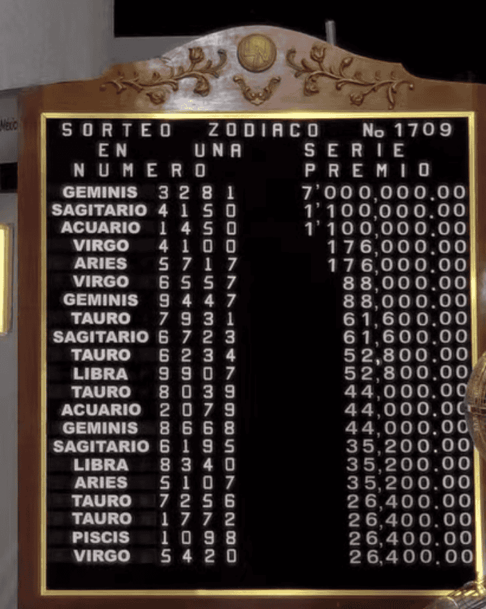 Cada domingo es una nueva oportunidad para tentar a la suerte con el Sorteo Zodiaco de la Lotería Nacional, uno de los sorteos más esperados por los amantes del azar. En esta ocasión, la edición número 1709 se celebra este domingo 29 de junio de 2025, ofreciendo a los participantes la posibilidad de ganar un atractivo premio mayor.El Sorteo Zodiaco ha ganado popularidad entre los jugadores frecuentes gracias a sus importantes premios y su carácter conmemorativo.El premio mayor que estará en juego este domingo asciende a 7 millones de pesos, lo que representa una excelente oportunidad para quienes compren su cachito. Si la suerte te acompaña, podrías convertirte en uno de los grandes ganadores de este emblemático sorteo que semana tras semana mantiene viva la tradición y la esperanza de miles de personas.Participar es muy sencillo: puedes adquirir tu boleto en los puntos de venta autorizados o a través de la página oficial de la Lotería Nacional. Con tan solo 20 pesos por cachito, podrías ser el próximo afortunado en cambiar tu vida.Los resultados del Sorteo Zodiaco se darán a conocer este domingo en punto de las 20:00 horas. Si participaste, no olvides consultar los números ganadores a través de EL INFORMADOR. Se han dado a conocer los números ganadores del sorteo. El premio mayor de 7 millones de pesos corresponde al signo géminis con el número 3281.SV