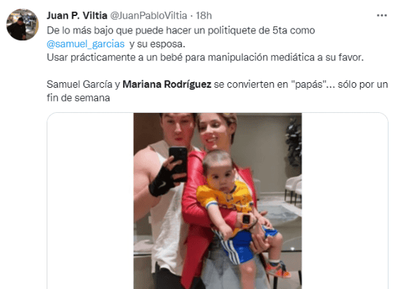 Lo que creyeron era una buena idea, ahora es motivo para que Mariana Rodríguez y el gobernador de Nuevo León, Samuel Garcia sean “destrozados” por usuarios de redes sociales debido a su “adopción” momentánea. Mariana Rodríguez y Samuel García anunciaron en sus redes sociales sobre la adopción del pequeño Emiliano, del sistema de Desarrollo Integral de las Familias (DIF) Capullos. "Pedí un permiso de convivencia familiar, ya que ese se da cuando ya hay un vínculo entre el niño y la familia”, fue parte de lo que dijo Mariana para justificar la visita del pequeño durante el fin de semana.Sin embargo, este hecho ha sido sumamente criticado en redes sociales e incluso los acusan de violentar los derechos del menor y de usarlo sólo para hacerse publicidad.Y aunque algunos pocos no vieron mal la acción de Mariana, sí criticaron, como muchos otros, la exposición del menor. Ni Mariana o Samuel han reaccionado a las críticas de internautas, y siguen compartiendo varias historias en redes sociales donde se les ve conviviendo con Emiliano. GC