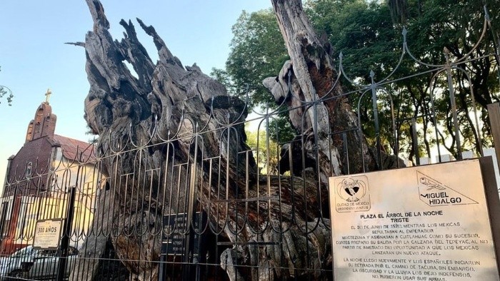 Incluso si vives en Ciudad de México, es posible que hayas paseado en innumerables ocasiones por la calzada México-Tacuba sin ser consciente de toda la historia que esconde.Entre monumentales edificios y espléndidos palacios, sus más de ocho kilómetros son un fascinante reflejo de la arquitectura y siglos de vida de la capital mexicana.De hecho, esta avenida que atraviesa la ciudad desde el Zócalo del centro histórico está considerada como la calle más antigua de toda América.Se calcula que ya desde el siglo XIV fue una de las calzadas originales de México-Tenochtitlan, la capital que los mexicas fundaron en 1325, según la teoría más extendida entre historiadores."Era de suma importancia al ser la principal vía que unía Tenochtitlan, que era una isla en el lago de Texcoco, con tierra firme", destaca Enrique Ortiz García, cronista de la capital y autor del libro "El mundo prehispánico para gente con prisa".Inicialmente era denominada calzada Tlacopan ("lugar sobre las varas" en náhuatl) porque llegaba hasta esta zona al oeste del valle de México, que actualmente se llama Tacuba. Fueron los españoles quienes le cambiaron el nombre tras su llegada."Cuando Hernán Cortés decide fundar la nueva Ciudad de México sobre las ruinas de Tenochtitlan, mantiene por motivos prácticos las calles principales que la dividían como una cruz en cuatro sectores. Y en esta calzada se empiezan a construir las primeras mansiones, templos…", le dice Ortiz García a BBC Mundo.Pero esta arteria no solo acoge joyas arquitectónicas y monumentos: también ha sido escenario de grandes momentos históricos que hacen de ella uno de los lugares imprescindibles para conocer el pasado de Ciudad de México.Estos son 5 de los lugares más emblemáticos que puedes descubrir si paseas por esta histórica calzada, actualmente dividida en cinco tramos: calle de Tacuba, avenida Hidalgo, avenida México-Tenochtitlan (hasta el pasado agosto llamada Puente de Alvarado por el conquistador español Pedro de Alvarado), Ribera de San Cosme y calzada México-Tacuba.También este año, las autoridades de Ciudad de México cambiaron el nombre de la que hasta entonces se llamaba Plaza de la Noche Triste como homenaje a "la resistencia indígena" en el marco del 500 aniversario de la conquista de México.Su denominación anterior se debía a que, según la leyenda, el conquistador Hernán Cortes lloró junto a un árbol de esta plaza tras perder una batalla en 1520 frente a los mexicas, quienes sitiaron a los españoles que habían llevado a cabo previamente la masacre de miles de jóvenes indígenas en el Templo Mayor.La huida de los europeos se realizó por esta calzada de Tacuba y sufireron cientos de bajas. En la plaza aún pueden verse los restos del gran árbol de ahuehuete sobre el que supuestamente Cortés derramó sus lágrimas, si bien muchos expertos discrepan y aseguran que no hay pruebas documentales que avalen este episodio."Eso es un mito de la historia. Sin embargo, es un símbolo de mucha importancia por su significado, por la resistencia de los pueblos originarios ante los europeos", asegura Ortiz García.En la actualidad, este árbol protegido por una pequeña reja y que ha sufrido varios incendios en su historia pasa sus días sin recibir demasiado interés de los mexicanos que caminan junto a la plaza ubicada en una transitada parte de esta histórica vía.Uno de los últimos majestuosos palacios construidos durante el gobierno del general Porfirio Díaz es el antiguo Palacio de la Secretaría de Comunicaciones y Obras Públicas, actualmente sede del Museo Nacional de Arte.Fue inaugurado a inicios del siglo XX, con un estilo ecléctico propio de la época y elementos neoclásicos y renacentistas. El exterior está realizado en cantera gris. El interior está presidido por una espléndida escalera.En este mismo espacio, antes se encontraba el hospital de San Andrés en el que se exhibió el cadáver embalsamado del emperador Maximiliano de Habsburgo tras su fusilamiento en Querétaro en 1867.En ese lugar fue donde lo visitó prácticamente de incógnito el presidente mexicano Benito Juárez. "Se dice que al ver su cadáver pensó que tenía un cuerpo raro, desproporcionado y con las piernas demasiado largas", relata Ortiz García.Frente a este edificio se encuentra una enorme estatua ecuestre del rey español Carlos IV. Después de que México lograra su independencia, "el Caballito" fue trasladado a diferentes lugares hasta acabar en este punto de la calle Tacuba. "México la conserva como un monumento de arte", se aclara en la base de la estatua.Justo enfrente se encuentra el fastuoso Palacio Postal, un edificio repleto de ornamentaciones y colores dorados que atraen cada día a cientos de turistas.Llamado la Quinta Casa de Correos, este palacio de 1907 es una muestra de eclecticismo que aglutina estilos como el gótico, el plateresco, el art nouveau y el mudéjar, entre otros.Sus fachadas tienen adosados 15 lampadarios con forma de figuras fantásticas similares a dragones hechas en bronce macizo.En su interior, destacan los elegantes elevadores, grandes escaleras y bellas lámparas que transportan a los visitantes a otra época.Eso sí, lejos de ser solo una especie de museo para turistas, sus grandes ventanillas y mostradores siguen recibiendo clientes como parte del Servicio Postal mexicano.Una casona del siglo XVII alberga el emblemático Café de Tacuba, cuyos salones han acogido reuniones y tertulias de artistas, intelectuales y presidentes durante generaciones.Fundado en 1912, su decoración tiene un aspecto religioso con murales de arte sacro, óleos de arcángeles y grandes vitrales de colores.El motivo de este estilo se debe a que, antes del café, en parte del inmueble se ubicaba el primer hospital psiquiátrico de mujeres de la época colonial y que era atendido por monjas. De hecho, el traje blanco y la cofia de las meseras actuales recuerda al uniforme que podían llevar las cu
