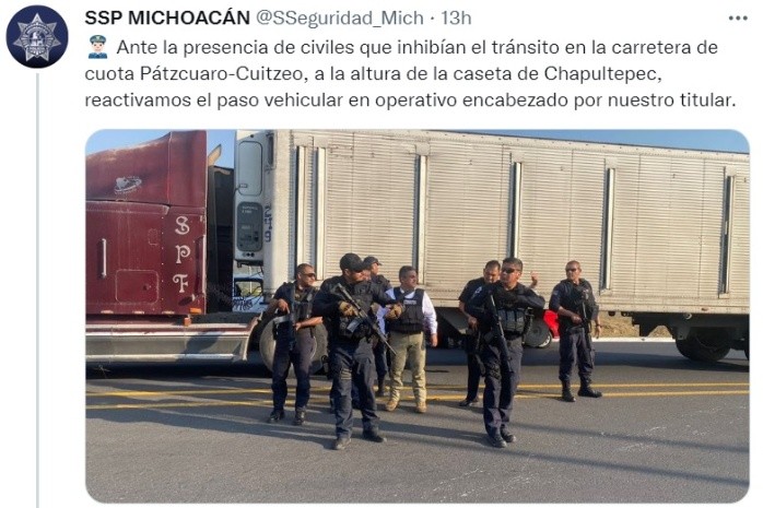Personal de la Secretaría de Seguridad Pública de Michoacán, frenó el avance de un grupo armado que pretendía extenderse a la tenencia de Capula, municipio de Morelia.Los autodenominados "Pueblos Unidos" bloquearon la circulación en una caseta de cuota de la carretera Pátzcuaro-Cuitzeo a la altura de la comunidad Chapultepec.Los sujetos, fuertemente armados, huyeron cuando un operativo policial, encabezado por el titular de la SSP, José Alfredo Ortega Reyes, se desplegó en esa zona.El convoy policial restableció la circulación de ese tramo carretero, asediado por los hombres armados que circulaban en varias camionetas."Pueblos Unidos" fue en sus inicios un movimiento armado que, dijeron, fue creado para defenderse de la delincuencia en Ario de Rosales, Nuevo Urecho, y Taretan.Después, se extendieron a otros puntos de Michoacán, donde ya son acusados por la población de extorsión, cobro de piso y secuestro.Fuentes de la SSP, señalaron que al haber decenas de automovilistas y familias varadas, evitaron una confrontación a tiros con el grupo armado.OA