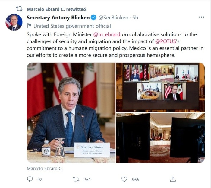 Tras reunirse con su homólogo estadounidense, Antony Blinken, el secretario de Relaciones Exteriores (SRE), Marcelo Ebrard, aseguró que México busca entendimiento y cooperación con Estados Unidos para tener una agenda común que permita, entre otros temas, atender las causas estructurales de la migración.Durante el encuentro virtual entre ambos cancres, Marcelo Ebrard expuso el Plan de Desarrollo Integral que se creó, hace dos años, en colaboración con Guatemala, Honduras, El Salvador y la Cepal para aplicar políticas públicas que permitan hacer llegar recursos, de manera directa, a la población centroamericana y con ello puedan emplearse y no tener necesidad de emigrar.De acuerdo con la Secretaría de Relaciones Exteriores (SRE), el canciller Ebrard propuso que ese Plan de Desarrollo Integral se tome en cuenta en los distintos mecanismos de cooperación para la región.Desde la creación del Plan, México –entre otros- pidió a Estados Unidos la aportación económica. El gobierno del entonces presidente Donald Trump se comprometió a brindar el apoyo, pero éste no llegó.El encuentro entre los dos equipos de cancillerías se llevó a cabo de manera virtual y se trató del primero que ocurre entre los dos gobiernos. Blinken también tuvo encuentro virtual, este viernes, con Canadá.JM
