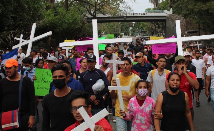 Durante semanas la ciudad fronteriza de Tapachula se ha visto afectada por las protestas casi diarias de migrantes frustrados por la larga espera para que las autoridades migratorias les entreguen los documentos para continuar su viaje hacia Estados Unidos.El viernes una de esas protestas pareció dar frutos. A unos 150 migrantes que gritaban a las afueras de un cuartel militar donde el Presidente de México, Andrés Manuel López Obrador (AMLO) ofrecía su "mañanera", se les dijo que recibirían visas humanitarias antes del final del día.El anuncio se dio después de que las autoridades migratorias informaron que habían entregado documentos similares a unos 800 migrantes en Tapachula antes de la visita de López Obrador.Migrantes de Centroamérica, así como de Venezuela, Cuba y otras naciones, marcharon hasta la base donde estaba AMLO portando grandes cruces de madera. Una mujer que simuló una crucifixión se desmayó."Nosotros no queremos quedarnos aquí en México", dijo el cubano Roberto Báez Castillo, y agregó "el destino final es seguir a Estados Unidos. Entonces, no tienen derecho a tenernos retenidos aquí, a tenernos secuestrados prácticamente, por qué no pueden darnos un salvoconducto o la visa humanitaria".Poco tiempo después, un funcionario de migración de alto rango apareció para calmar a los manifestantes. El director General de Coordinación de Oficinas de Representación del Instituto Nacional de Migración (INM), Héctor Martínez Castuera, salió de la base militar para anunciarle a los extranjeros que harían una lista con los nombres, edades y nacionalidad, y prometió que se mantendrían unidas a las familias. "Hoy les daremos las tarjetas", dijo el funcionario.Los migrantes denunciaron que a pesar de haber recibido el documento migratorio cuando intentaron viajar hacia el norte de México, fueron detenidos y devueltos a Chiapas.AMLO no se dirigió el viernes directamente a los migrantes que protestaban fuera de la instalación militar, pero reiteró su deseo de expandir sus programas sociales que inició en México a Centroamérica para reducir la presión económica para migrar.GC