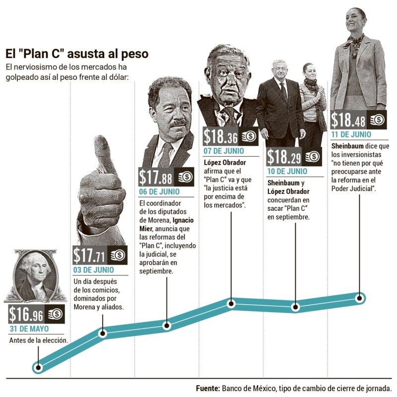 La próxima presidenta de México, Claudia Sheinbaum, calificó como “muy cordial” la reunión que sostuvo con representantes del Gobierno de Estados Unidos (EU), encabezados por su embajador en el país, Ken Salazar, y la asesora de Seguridad Nacional de la Casa Blanca, Elizabeth Sherwood-Randall, y prometió una relación bilateral de “igualdad y colaboración” entre ambas naciones. Durante el diálogo, de aproximadamente una hora, se tocaron temas como comercio, migración, seguridad y tráfico de armas, informó la futura mandataria. En un tema particularmente delicado en la relación México-EU, la migración, la futura presidenta dijo que refrendaron la “esencia fundamental” de la política de López Obrador, que “es la atención a las causas que provocan la migración”, así como “la importancia de la cooperación para el desarrollo en Centroamérica, en países que hoy están expulsando personas por necesidad y que quieran llegar a los Estados Unidos”.En cuanto a la posibilidad de reforzar la frontera Sur de México frente a los migrantes, Sheinbaum dijo que no llegaron “a detalles, ni mucho menos”.La futura presidenta, que asumirá el próximo 1 de octubre, destacó que habló con Sherwood-Randall sobre su estrategia de seguridad en la Ciudad de México, que tiene dos grandes ejes, la atención a las causas y la disminución de la impunidad, la cual buscará replicar en todo el país.Omar García Harfuch, virtual senador electo, y Juan Ramón de la Fuente, coordinador del equipo de transición de Sheinbaum, también estuvieron en la reunión bilateral.Agencias El peso mexicano fue la divisa más depreciada, entre los principales cruces frente al dólar, con -1.55% respecto al lunes. La depreciación se debe, según expertos, a que continúa la aversión al riesgo sobre México, ante los comentarios de Sheinbaum que hacen pensar que no se distanciará del Presidente López Obrador, lo que eleva el riesgo de que su mandato se vea como extensión del actual. Piden diálogo y respeto a la división de Poderes en el país El sector privado consideró que la incertidumbre que hay en torno a las reformas al Poder Judicial y al Instituto Nacional Electoral (INE) debe calmarse con diálogo para llegar a un buen acuerdo, en el que se mantenga una división de Poderes pese al entorno.El presidente del Consejo Mexicano de Negocios (CMN), Rolando Vega, dijo que no se frenarán inversiones porque las empresas vienen a establecerse a largo plazo.“Estamos agendando 30 mil millones de dólares para este año en inversiones”, afirmó el titular del CMN.Sin embargo, añadió que “obviamente lo que el sector empresarial necesita, como en todos los países del mundo, es certeza y seguridad jurídica para poder seguir adelante”.El presidente del Consejo Coordinador Empresarial (CCE), Francisco Cervantes, dijo que les preocupa el movimiento del peso frente al dólar. Sin embargo, añadió que “no hay por qué ponerse nerviosos, porque hay buena relación, no se ha roto ningún lazo de comunicación, o sea, la comunicación es muy buena y eso es lo que deben ver también los mercados. No estamos cruzados de brazos”. CT
