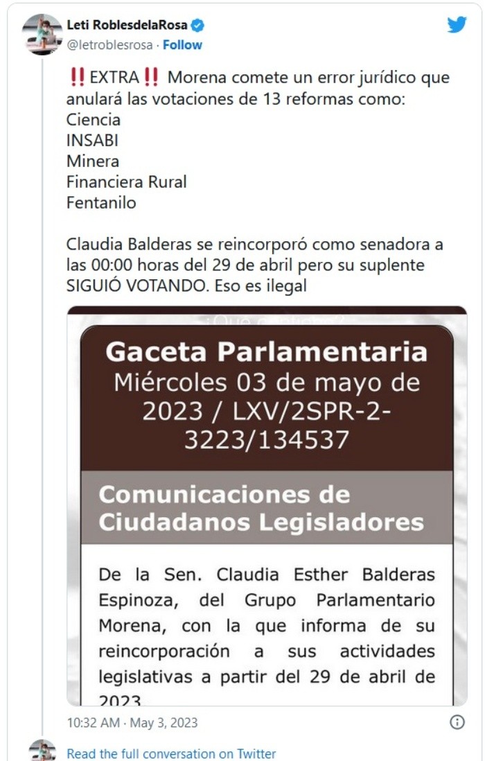Ante la polémica por la licencia fugaz de la senadora Claudia Balderas para que su suplente votara en la última sesión del periodo ordinario, el líder de Morena y presidente de la Junta de Coordinación Política del Senado, Ricardo Monreal, aseguró que los trámites de licencia y posterior reincorporación de la legisladora plurinominal fueron apegados a la legalidad.En entrevista, el senador explicó que su compañera de bancada pidió licencia cuando había concluido la participación de la delegación mexicana en la Reunión Parlamentaria México-Unión Europea en Bruselas, Bélgica, por lo que nunca hubo dos senadoras ocupando el mismo escaño.“Está bien cuidado legalmente (el trámite). No hay problema, ella ya no cumplía función oficial, como se los digo, ya había culminado su encargo oficial y por tanto ella decidió pedir licencia el 29, porque no alcanzaba a llegar (a México)”, indicó.Monreal dijo que la ley no impide que un legislador pida licencia por un solo día o unas horas.“¿No tuvieron un senador cachirul?”, se le cuestionó.“Absolutamente no, lo rechazo categóricamente. Ayer (martes) la senadora afirmó que fue su voluntad y que no hubiese confusiones al respecto. Es legal la forma en que pidió licencia, es legal la forma en que se nombró a la suplente. Era la 66, bastaban los sesenta y cinco votos que teníamos para poder tener quórum legal”, respondió el coordinador de Morena en el Senado.Ricardo Monreal negó que la presencia de la senadora suplente Tanya Viveros Cházaro hubiera sido necesaria para alcanzar el quórum, pues Morena y aliados ya sumaban 65 legisladores asistentes a la sesión.“Todo el proceso se cuidó. Ese era el voto 66”, insistió.Monreal aseguró no tener temor alguno de que la Suprema Corte de Justicia de la Nación (SCJN) “tire” las 20 reformas que la mayoría legislativa, integrada por Morena y sus aliados, aprobó en la última sesión del periodo ordinario el viernes pasado, porque el procedimiento que se siguió fue “jurídicamente impecable”.Argumentó que el aval a estas reformas se hizo con el quórum necesario y con los procedimientos legislativos apegados a la legalidad y a la Constitución.“Todas (las reformas) son legales constitucionalmente, todas siguieron el trámite formal, a todas se les abrió el mismo procedimiento”, refirió.El coordinador parlamentario sostuvo que no hay ningún recoveco legal para que la Suprema Corte las invalide e insistió en que “jurídicamente es impecable el procedimiento” y de acuerdo con los procedimientos del Senado.“¿No tiene miedo de que la Corte se las tire?”, se le preguntó.“No, no, yo no tengo miedo de nada. Tengo solamente temor de Dios y no tengo miedo de nada. (…) No nos da temor el que se impugne ante la Corte, las 18, 19 minutas, es su derecho, no hay preocupación de nuestra parte”, respondió.JM