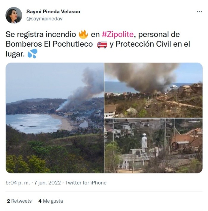Un fuerte incendio se registró la tarde de este martes en al menos 10 negocios ubicados frente al mar en Zipolite, detallan autoridades de Oaxaca.El siniestro fue confirmado por Saymi Pineda, presidenta municipal de Pochutla, quien a través de sus redes sociales solicitó la ayuda de pipas para apagar el fuego en este famoso destino nudista, mismo que estaba extendiéndose a otros negocios.David Rodríguez, agente de policía y máxima autoridad en la comunidad, informó que el siniestro comenzó por un cortocircuito en uno de los locales ubicados en la zona de Roca Blanca, para luego extenderse a las palapas que lo rodean.La respuesta de los ciudadanos y las pipas que se encontraban abasteciendo de agua a la población fue rápida, logrando hasta este momento sofocar en 80% el incendio.Uno de los negocios donde inició el fuego es el hotel Naked, uno de los más famosos de Zipolite por impulsar el nudismo."El incendio alcanzó a diez negocios que están frente al mar, el fuego se extendió rápido pero con las pipas de agua tuvimos que mojar el resto de las palapas que rodean la zona siniestrada para que no se quemen." informó el agente.JM