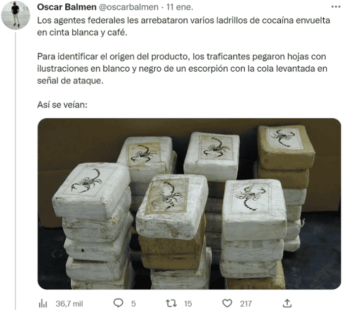 Ovidio Guzmán López, alias "El Ratón", uno de los diez hijos conocidos del Joaquín "Chapo" Guzmán, cayó durante un operativo militar en la localidad de Jesús María, en Sinaloa, el pasado 5 de enero. Luego de su aprehensión se han dado a conocer un sinfín de detalles sobre su persona, su familia y su situación legal frente a las acusaciones de las que es objeto, no solamente por parte del Gobierno de México, sino además por los cargos que le fincan en los Estados Unidos.Durante su captura, en un inmueble de la sindicatura de Jesús María, una de las localidades cooptadas por el Cártel de Sinaloa, de acuerdo a investigaciones, fueron muchas las evidencias que se encontraron, pero una de ellas, en particular, "podría hundirlo en caso de una extradición a Estados Unidos" y favorecer a que, igual que su padre, enfrente una cadena perpetua en aquel país.Tras su captura, las autoridades comenzaron una exhaustiva revisión de la finca, y encontraron a la "mascota" de Ovidio Guzmán: un escorpión, o alacrán, como se le conoce en México. Pero más allá de lo anecdotario del asunto, el hecho resulta por demás interesante y el periodista Óscar Balmen da cuenta de ello:En redes sociales, el periodista recuperó información relevante en el caso. Según él, ante la orden de "no dejar ni un sólo espacio sin revisar", para encontrar una evidencia crucial y poder integrar un expediente judicial contra Ovidio, "un militar encontró un escorpión", dentro de una pecera; pero, asegura Balmen: "Ese arácnido era una de las mascotas de Ovidio Guzmán. Pero también era algo más que un animal de compañía: la DEA buscaba pistas —desde hace años— que vincularan cargamentos de drogas identificados con un escorpión con traficantes de fentanilo en EU liderados por el joven capo", por lo que ese pequeño animal tiene un valor importante en la investigación.De acuerdo al periodista, en 2017, en los Estados Unidos se realizó una investigación sobre cómo operaba el Cártel de Sinaloa en Los Ángeles, California, así fue se dieron cuenta decomisaron "ladrillos de cocaína", y sobre ellos había un dibujo de un escorpión con el aguijón en señal de ataque; así fue como las autoridades estadounidenses relacionaron el ícono con el grupo criminal, aunque no con precisión sobre qué facción al interior. Además, apunta Oscar Belmen, "en el expediente, los agentes estadounidenses agregaron como referencia la imagen de una playera que se vendía en la plataforma de comercio electrónico AliExpress: en la prenda se leía 'Cártel de Sinaloa' y se ilustraba con dos manos empuñando armas cortas con la bandera mexicana en las correderas. En el dorso de una de las manos había un escorpión tatuado". Por lo que las dudas se disiparon en aquella pecera en la casa donde detuvieron a Ovidio Guzmán el pasado 5 de enero, y que trajo una jornada violenta para Sinaloa, con enfrentamientos armados entre fuerzas federales y hombres armados, quema de vehículos y tiendas, tiroteos, bloqueos en vialidades y, desde luego, pérdidas económicas para la región.Balmen concluye sobre el caso de Ovidio que "el gobierno de Estados Unidos ya tiene como ligarlo a decenas de kilos con droga en su territorio con ese sello. Suficientes para ponerlo en cadena perpetua, como su padre", el "Chapo" Guzmán, que cumple su condena en el país norteamericano.Una semana después de ser recapturado y encarcelado en el penal de máxima seguridad de El Altiplano, Ovidio Guzmán López, alias "El Ratón", uno de los líderes de "Los Chapitos", del Cártel de Sinaloa, sufrió un revés judicial en su intento por frenar su extradición a Estados Unidos.Un juez de Distrito le negó la suspensión definitiva en uno de los juicios de amparo que tramitó hace unos días contra la detención con fines de extradición, incomunicación y tortura.OA