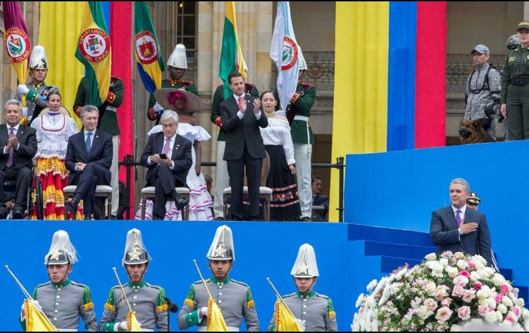 Tras felicitar a Iván Duque, nuevo presidente de Colombia, el Mandatario mexicano Enrique Peña Nieto afirmó que los lazos entre ambos países son sólidos y han logrado que la relación estratégica se traduzca en beneficios concretos para ambos pueblos."México continuará estrechando los lazos de cooperación con Colombia a partir de la toma de posesión del nuevo gobierno de Iván Duque", informó la oficina de la Presidencia de la República en su cuenta oficial de Twitter.Luego, en un comunicado, la dependencia informó que en el contexto de la Ceremonia de Transmisión de Mando en Bogotá, el Presidente Peña Nieto sostuvo un encuentro por la mañana con el mandatario electo de Colombia, a quien le deseó el mayor de los éxitos durante su mandato.Peña Nieto reiteró la plena disposición de México de trabajar para continuar fortaleciendo una de las relaciones bilaterales más robustas y cercanas que tiene nuestro país."México y Colombia establecieron una relación de carácter estratégico en 2015, la cual ha permitido impulsar la agenda bilateral en materia de comercio e inversiones, seguridad, educación y cultura, asuntos consulares y migratorios", dijo la dependencia.Entre esos resultados, destacó Presidencia, está la relación que ha llevado a que Colombia sea el segundo socio comercial de México en América Latina y a un incremento sin precedente de turistas entre ambos países.Tan sólo en 2017 viajaron a México casi medio millón de turistas colombianos, lo que representa un aumento de 200% respecto a lo registrado en 2012.SA