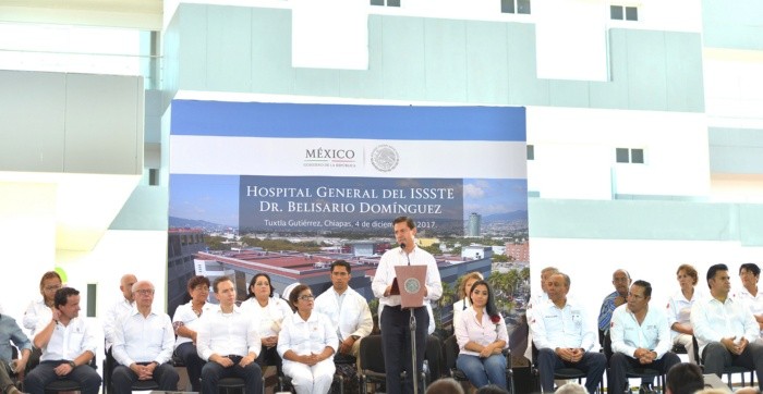 El Presidente Enrique Peña Nieto advirtió que está en la recta final de su administración y llamó a acelerar el paso para completar los proyectos que se propuso consolidar durante su gestión.Al inaugurar el nuevo hospital de especialidades "Belisario Domínguez" del ISSSTE, el Mandatario dijo al gobernador Manuel Velasco: "Casi llegamos juntos y nos vamos a ir prácticamente juntos porque ahora estamos en la recta final y ahora hay que acelerar el paso para poder dejar completados todos los proyectos que nos propusimos a hacer al inicio de nuestras gestiones".En su mensaje, el Presidente de la República recordó que el viernes pasado se inició el sexto año de esta administración y tuvo la oportunidad de encontrarse con servidores públicos federales que han acompañado su gobierno a quienes pudo expresar su gratitud y reconocimiento."Hoy, qué bueno que tengo la oportunidad de hacerlo particularmente con esta representación (de trabajadores), nunca podré acabar o nunca tendré el espacio suficiente para encontrarme con los casi 3 millones de servidores públicos, entre maestras y maestros, médicos, enfermeras, personal de nuestras Fuerzas Armadas, y otros que son parte de la familia del gobierno de la República, pero a quienes están aquí presentes les quiero reiterar a las mujeres y hombres que no importando la trinchera en que están hoy actuando como médicos, como enfermeras muchísimas y personal administrativo muchísimas gracias, Porque los logros de este gobierno son gracias al compromiso de cada servidor público".Peña Nieto dijo que el sismo del 7 de septiembre aceleró la construcción y equipamiento del nuevo hospital "Belisario Domínguez" para atender a los burócratas federales asentados en esta entidad.Hizo notar que el ISSSTE atiende a 13 millones de derechohabientes los cuales, si formaran un país, sería la nación 75 del mundo en población; "trece millones de personas que es la población derechohabiente del ISSSTE es un gran universo a atender", dijo.Destacó que en los últimos cinco años se ha fortalecido el ISSSTE con la contratación -con el mismo presupuesto con el que operaba en 2013 en términos reales- de 10 mil médicos y enfermeras para atender con calidad humana a su población derechohabiente.El presidente Peña enfatizó que el ISSSTE se ha ocupado de tener mejor infraestructura, mejora capacitación y formación de su personal médico y presumió el monitoreo permanente de las 250 estancias infantiles de este Instituto."Se ha venido modernizando y ha prestado mejores servicios a su población derechohabiente no solo en la calidad de los servicios médicos sino también en otras prestaciones que otorga esta institución, particularmente préstamos para la población derechohabiente y pueda construir su vivienda", indicó.El mandatario reconoció la labor del personal del ISSSTE para atender a la población damnificada por los terremotos del 7 y 19 de septiembre, pues dijo que además de hacer su trabajo normal se hizo responsable de varios municipios para atender a la población damnificada.Asentó que el ISSSTE y el IMSS abrieron sus puertas para prestar atención médica a todas las personas damnificadas no importando si era población derechohabiente.Apuntó que en todo el país se dañaron 325 unidades médicas estatales o federales de las cuales la mayoría tuvo afectaciones menores y parciales, pero 53 clínicas y hospitales tendrán que ser sustituidos por haber sufrido daños mayores.Indicó que debido a que esta infraestructura pública estaba asegurada. Precisó que con ello la inversión que habrá de demandar de casi 5 mil millones de pesos será apoyada por los seguros por lo que no costará su sustitución a los mexicanos.AJB.