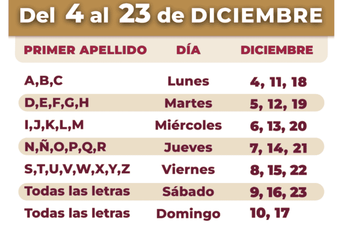 La Pensión Bienestar se ha convertido en uno de los programas sociales más importantes del actual sexenio del Gobierno de México, el cual otorga un apoyo económico a los adultos mayores a 65 años sin importar su condición o clase social, creencia o estatus; basta tener el requisito mínimo de la edad para poder ser acreedores al beneficio. La Pensión Bienestar tiene una relevancia constitucional; esto quiere decir que, sin importar el gobierno, gobernante o el partido político al mando, es obligación del Estado otorgarlo según lo estipulado en la Constitución. El apoyo es de $4 mil 800 pesos que se entregan bimestralmente a una cuenta de la tarjeta de bienestar, y la cual puede usarse como cualquier tarjeta de crédito, además de que entrega beneficios exclusivos para tiendas oficiales, dependencias del gobierno, o comercios asociados en todo México.Es importante mencionar que para 2024 habrá un incremento en el programa, por lo que para el siguiente año, los adultos mayores recibirán una cantidad aproximada de 6 mil pesos.Cualquier adulto mayor a 65 años puede ser acreedor al apoyo económico. Actualmente, se encuentra una convocatoria abierta para los adultos mayores que cumplan 65 años del 1 de noviembre del 2023 al 30 de junio del 2024. La convocatoria actual estará vigente del 4 al 23 de diciembre, en los módulos del Bienestar disponibles en todos los estados del país. La ubicación de los módulos oficiales puede consultarse en la página oficial del Gobierno de México. Es necesario que el adulto mayor se presente con la documentación debida en un horario de 10 am a 4 pm, de lunes a domingo, y tan solo del 4 al 23 de diciembre del año en curso. El registro se realiza según el primer apellido, por lo que hay días específicos que puedes consultar en la siguiente imagen: La persona solicitante adulta mayor debe llevar consigo los siguientes documentos para poder incorporarse al programa:En caso de que el adulto mayor necesite ayuda durante el trámite, es posible llevar consigo a algún familiar o un "auxiliar", que deberá llevar los mismos documentos de identificación. De acuerdo con el Gobierno de México, "se dará atención prioritaria a las personas adultas mayores que habitan en municipios y localidades con población mayoritariamente indígena o afromexicana o con alto o muy alto grado de marginación".El adulto mayor será notificado vía telefónica de su incorporación al programa, y de los siguientes pasos a tomar. Con información de Gobierno de México FS