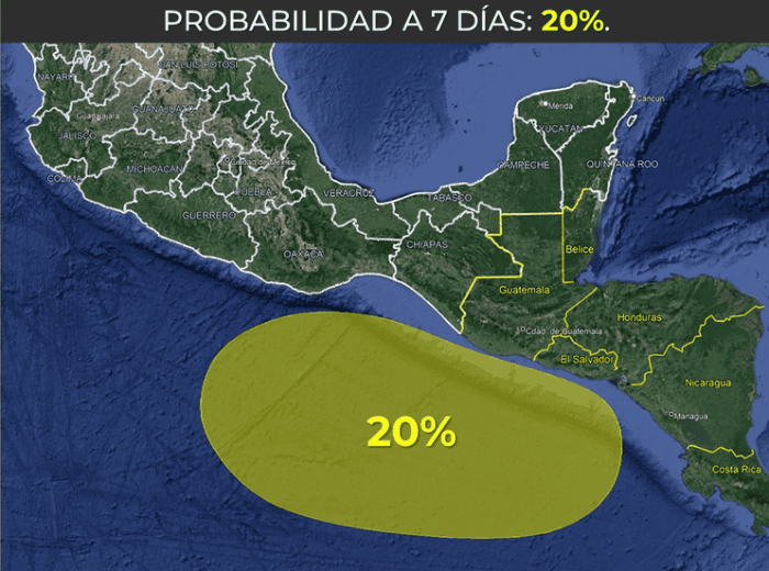 El pronóstico del Servicio Meteorológico Nacional (SMN), fuente oficial del Gobierno de México en materia climática, prevé que "Otis" alcance la categoría de huracán e impacte en Guerrero; pero al mismo tiempo, un sistema comienza a formarse en el Océano Pacífico que, de continuar su evolución, se convertiría en el ciclón tropical "Pilar".El SMN informó esta mañana que:Se prevé la formación de una zona de baja presión al sur de las costas de El Salvador y Guatemala, a partir de los remanentes de la Depresión Tropical 21, mantiene 20" de probabilidad para desarrollo ciclónico en 7 días.Hoy, la depresión tropical 21 se desplazará sobre Centroamérica, su circulación favorecerá el ingreso de humedad del Mar Caribe hacia la Península de Yucatán, ocasionará lluvias fuertes a muy fuertes en dicha región. Dichas lluvias a partir de fuertes estarán acompañadas de descargas eléctricas y posible caída de granizo, así mismo podrían originar visibilidad reducida, deslaves, encharcamientos o inundaciones, así como incremento en los niveles de ríos y arroyos.Para el miércoles, la zona de baja presión con probabilidad de desarrollo ciclónico continuará su recorrido sobre Centroamérica, pudiendo ingresar en aguas del Océano Pacífico, propiciando en su recorrido probabilidad de chubascos y lluvias muy fuertes a puntuales intensas en la Península de Yucatán y el sureste del territorio nacional.El jueves, la zona de baja presión con probabilidad de desarrollo ciclónico se desplazará al sur de las costas de Chiapas, interaccionará con un canal de baja presión extendido sobre el oriente del país y en combinación con el ingreso de humedad del Golfo de México y Mar Caribe, originarán probabilidad de lluvias fuertes a muy fuertes en el oriente y sureste de la República Mexicana, incluyendo la Península de Yucatán, pronosticándose lluvias puntuales intensas en Veracruz, Oaxaca y Chiapas.El viernes, la zona de baja presión con probabilidad de desarrollo ciclónico se desplazará al sur de las costas de Oaxaca, continuará interaccionando con un canal de baja presión que se extenderá sobre el oriente del territorio nacional, manteniendo la probabilidad de lluvias muy fuertes a puntuales intensas en el oriente, sur y sureste de México, además de rachas fuertes de viento y oleaje elevado en las costas de Chiapas y Oaxaca. "Pilar" sería el siguiente ciclón de la temporada, que espera entre 16 y 22 sistemas en el Océano Pacífico. Hasta ahora, se han desarrollado 6 tormentas tropicales, incluyendo a "Otis"; 2 huracanes con categoría 1 ó 2; y 7 huracanes categorías 3, 4 ó 5.Con información del Servicio Meteorológico Nacional* * * Mantente al día con las noticias, únete a nuestro canal de Whatsapp * * *OA