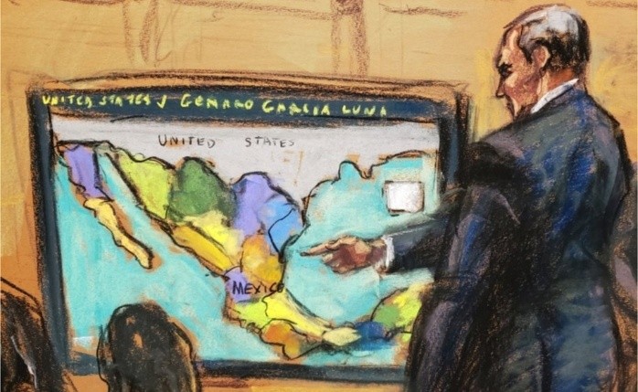 Las declaraciones del juicio más esperado en México tras el que acabó hace tres años con la condena a cadena perpetua de Joaquín "el Chapo" Guzmán arrancaron este lunes en Nueva York.Genaro García Luna, exsecretario de Seguridad de México durante la presidencia de Felipe Calderón (2006-2012), enfrenta un proceso en Estados Unidos por cargos de narcotráfico y por conspirar con el mismo cartel de Sinaloa al que, oficialmente, trató de hacer desaparecer durante sus años en el cargo.Este lunes, estas acusaciones salieron a florecer en la sala del tribunal de manera directa en boca del primer testigo en declarar por parte de la Fiscalía: Sergio Villarreal Barragán, alias el Grande.El narcotraficante, que se unió al crimen organizado tras años como policía y que ahora cumple pena de prisión en EE.UU., aseguró que vio en varias ocasiones a García Luna para pagarle sobornos de parte del cartel de Sinaloa que podrían haber ascendido, en algunos meses, a hasta US$1,5 millones.El exfuncionario rechaza todos los cargos que se le imputan.Su abogado aseguró en el inicio del juicio que no existen "ni fotos, ni videos" ni ninguna otra prueba, sino que toda la evidencia se basa en los testimonios de criminales confesos que podrían estar buscando venganza de quien lideró la "guerra contra el narco" en México.El fiscal, por su parte, reiteró en su alegato inicial que el exfuncionario era un miembro activo del cartel y no un mero colaborador, que aprovechó su poder para permitir el traslado de droga a EE.UU. y que aceptó de este grupo grandes cantidades de dinero.El Grande testificó ante el jurado que "con la ayuda del gobierno [mexicano], el cartel creció en términos de territorio".Pero fue también muy específico sobre cómo, supuestamente, García Luna apoyó al grupo que entonces dirigía el Chapo. "Era de gran ayuda porque pudimos crecer y minimizar a nuestros rivales".El testigo declaró que el encargado de los pagos a García Luna (a quien otros líderes del cartel se referían como el Compa o el Tartamudo) era Arturo Beltrán, socio del cartel de Sinaloa y posteriormente líder del cartel de los Beltrán Leyva.El Grande dijo haber estado presente en una veintena de esas transacciones económicas que, según sus palabras, "crecieron conforme creció el cartel y sin ese apoyo hubiese sido prácticamente imposible".El narcotraficante dijo que cuando comenzó a trabajar para el clan de los Leyva en 2001 -García Luna era entonces director de la Agencia Federal de Investigaciones (AFI)- el funcionario ya estaba en la nómina del cartel y se le siguió pagando hasta la muerte de Arturo Beltrán Leyva ocho años después.Según sus palabras, los pagos a García Luna entre los años 2001 y 2004 ascendían a entre US$1 y 1,5 millones mensuales por su apoyo.A cambio, supuestamente la AFI se aseguraba de que tenían ruta libre para que el cartel transportara sus cargamentos.Los delincuentes recibieron camionetas, uniformes y credenciales que los identificaban como agentes de la AFI y que les permitían camuflarse y portar armas, siempre de acuerdo al testimonio del Grande.El Grande apuntó también que, durante los años siguientes, el acusado les proporcionaba información sobre operativos de seguridad, investigaciones en contra de miembros del cartel y datos que les pudieran ser útiles para atacar a grupos enemigos.Asimismo, según su testimonio, García Luna facilitaba el nombramiento y el cese de agentes en cualquier parte de México a petición de los narcotraficantes."Nos ayudaba a deshacernos de comandantes y jefes de la policía en cada plaza", afirmó.Villarreal Barragán fue detenido en 2010 y extraditado dos años después a EE.UU. -cuando García Luna aún era secretario de Seguridad-, donde se declaró culpable de narcotráfico y donde cumple una condena rebajada.El testigo, quien recibe este apodo debido a sus dos metros de altura, hizo durante su declaración de este lunes un repaso a su trayectoria en el crimen organizado.Trabajó como policía, pero acabó coludido con el cartel de Juárez y trabajó a las órdenes de Amado Carrillo Fuentes, el Señor de los Cielos.Distintos conflictos le hicieron acercarse después a Arturo Beltrán Leyva, quien "en ese momento era socio del Chapo e Ismael 'el Mayo' Zambada" del cartel de Sinaloa.Después de que se enemistaran con el Chapo, el Grande siguió trabajando para los hermanos Beltrán Leyva como uno de los hombres fuertes de su cartel.Durante esos años, su papel fue el de armar las rutas de tráfico de drogas hacia el norte de México, diseñar los operativos para atacar a los enemigos y acercarse a funcionarios para entregar sobornos, según declaró este lunes.La declaración del Grande, que continuará este martes, es la primera de los testigos que pasarán por el estrado de la Corte de Brooklyn entre quienes se encuentran narcotraficantes, antiguos socios del cartel y expolíticos.En el juicio, que se espera se alargue hasta ocho semanas, se acusa a García Luna de tres cargos por conspiración de narcotráfico, uno por pertenencia a organización criminal y otro por realizar declaraciones falsas a las autoridades de EE.UU.García Luna, quien es el exfuncionario mexicano de más alto rango en ser juzgado en EE.UU., podría recibir una pena de entre 10 años y cadena perpetua.Recuerda que puedes recibir notificaciones de BBC News Mundo. Descarga nuestra app y actívalas para no perderte nuestro mejor contenido.JM
