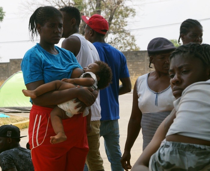Migrantes y activistas quemaron este sábado piñatas de los presidentes de México y de Estados Unidos, Andrés Manuel López Obrador y Donald Trump, frente a la estación migratoria Siglo XXI en Tapachula, Chiapas.En medio de la aglomeración de más de 500 migrantes principalmente africanos que llevan varios días aquí en espera de ser atendidos por el Instituto Nacional de Migración y obtener un salvoconducto para cruzar el país hacia Estados Unidos, se realizó una manifestación en defensa de los viajeros.El cubano Denis Hernández se manifestó cargando una enorme cruz de madera sobre sus hombros y pidió que se agilice el trámite para obtener el salvoconducto para continuar su recorrido.Vestido con traje y corbata y haciéndose pasar por Trump, Hernández llegó a la estación migratoria, donde abrazó a niños migrantes de República Democrática del Congo y Haití."Si tengo que dar la vida en esta cruz la voy a dar. No han dado respuesta, no hay salida a documentos ni buenos días. Estamos agotados física y mentalmente, No entendemos por qué no se nos da nuestro oficio de salida. Continuamos en huelga, esperamos oficio de salida", manifestó.Luego ingresó a la oficina del Instituto Nacional de Migración, donde los manifestantes se arrojaron huevos a las paredes provocando el enojo del personal del módulo de salud que brinda atención médica a los migrantes.Enseguida se colgaron de un árbol piñatas con cohetes pirotécnicos adentro y se les prendió fuego a las efigies de López Obrador, Trump, la secretaria mexicana de Gobernación, Olga Sánchez Cordero, y Yadira de los Santos, delegada del Instituto Nacional de Migración.Mientras tanto, migrantes y activistas gritaban "No a la deportación".Luis Villagaray, integrante del Centro de Dignificación Humana, aseguró que es en protesta porque desde el jueves han sido deportados más de 200 migrantes, una política que -dijo- está favoreciendo la discriminación "Por eso quemamos la efigie de estas personas", dijo."Salió un vuelo a La Habana y otro Haití. Para eso sí hay sistema, para eso sí hay dinero, para eso sí hay todo. Quemamos por el doble discurso. El muro está aquí; es el muro de Donald Trump, aquí empieza en el Soconusco. Qué vergüenza y qué pena", añadió.JM