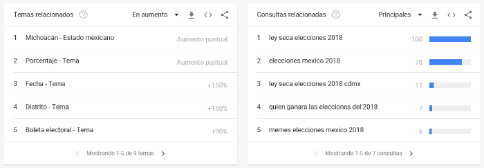 Un día antes de que se celebren las elecciones en México, las tendencias de Google México comienzan a mostrar cuáles son las principales preocupaciones de los electores en el país.Al introducir el térmico "elecciones 2018", la herramienta arroja que la mayor preocupación del electorado es si habrá o no Ley seca durante la votación.La pregunta que más le han hecho al buscador es "¿habrá Ley seca en las elecciones 2018?" la cuál muestra un aumento en las últimas horas, siendo el estado de Jalisco y la Ciudad de México donde se han realizado la mayoría de estas consultas.Otras preguntas sobre este tema han sido: ¿Cuándo inicia la Ley seca? y ¿Cuándo se termina la Ley seca?Otros usuarios también buscan las últimas encuestas, así lo demuestra que en las tendencias se encuentre el término "Consulta Mitofsky".Cabe agregar que, además de buscar a candidatos, partidos y plataformas de los mismos, la gente le ha preguntado a Google "¿quién ganará las elecciones del 2018?".Finalmente, aunque en menor medida, la gente ha buscado más sobre el maltrato animal, posiblemente esté relacionado con la noticia, que fue desmentida por "Verificado 2018" sobre que este primero de julio se podrá votar en contra este tema.Recuerda que desde primera hora, el domingo 1 de julio estaremos relatando cada detalle de la jornada electoral a través del sitio web y nuestras redes sociales. NM