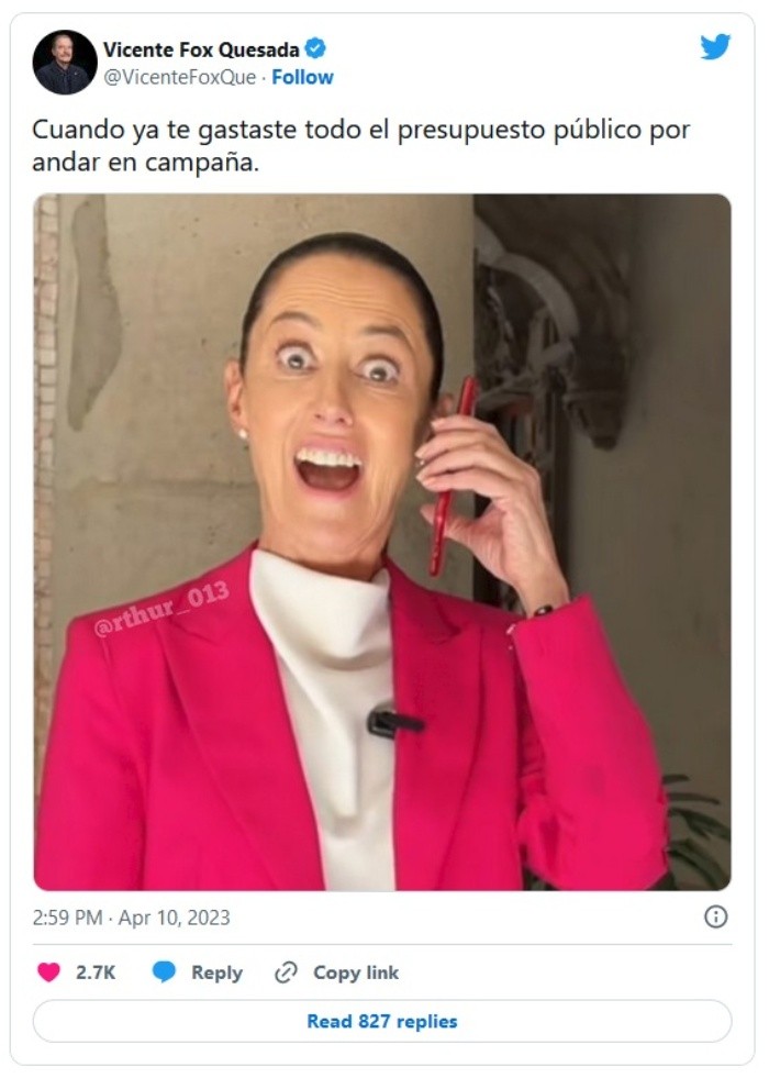 Luego de que Claudia Sheinbaum, jefa de Gobierno de la Ciudad de México, anunciara un concierto gratuito de Rosalía en el Zócalo el próximo 28 de abril, usuarios de redes sociales mostraron su molestia por el gasto que tendrá el concierto.El expresidente Vicente Fox criticó en redes sociales la próxima presentación de la "Motomami" y aseguró que "la austeridad sólo es cuando les conviene"."No tienen dinero para comprar vacunas. "No tienen dinero para arreglar el metro. "No tienen dinero para los tratamientos para el cáncer. "Pero si tienen para traer a Rosalía al Zócalo y seguir en campaña", criticó Fox en su post.En otro mensaje, el expresidente de México criticó el anunció que hizo Sheinbaum del concierto de la intérprete de "Bizcochito": "Cuando ya te gastaste todo el presupuesto público por andar en campaña".JM