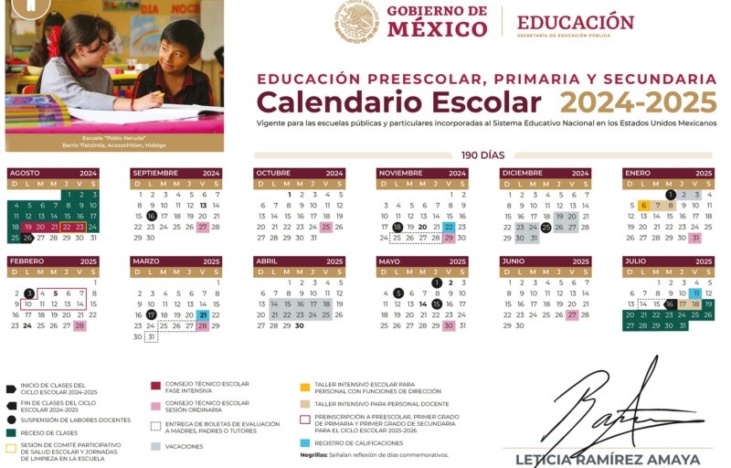 Este lunes 10 de junio, la Secretaría de Educación Pública (SEP) dio a conocer el calendario oficial del ciclo escolar 2024-2025 para escuelas de educación básica (preescolar, primaria y secundaria) públicas e incorporadas, estableciendo el día en que empiezan las clases tras el periodo vacacional de verano.De acuerdo con la noticia que apareció este día en el Diario Oficial de la Federación, (DOF), este calendario aplica para toda la República Mexicana.El ciclo escolar 2024-2025 será de 190 días.Las clases del nuevo ciclo escolar comenzarán el lunes 26 de agosto, mientras que se prevé que termine el miércoles 16 de julio del próximo año.De acuerdo con el nuevo calendario de la SEP, los días que no habrá clases serán aquellos en los que se lleven a cabo el Consejo Técnico Escolar (CTE), los periodos vacacionales, y los días feriados. Estos son: *Mantente al día con las noticias, únete a nuestro canal de WhatsAppOF