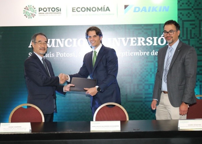 La compañía japonesa Daikin, la cual se dedica a la fabricación de aire acondicionado y aerotermia y que tiene su sede en Osaka compartió de forma conjunta con la Secretaría de Desarrollo Económico (Sedeco) de San Luis Potosí, su proyecto de expansión en el estado para atender a la demanda del mercado internacional.Este innovador proyecto contempla una inversión de 300 millones de dólares, lo cual equivaldría a aproximadamente 6 mil millones de pesos. La nueva fábrica producirá productos residenciales y comerciales, ambos con tecnologías innovadoras y sustentables.Cabe mencionar que para la operación de esta segunda planta de Daikin, se estima la creación de más de 2 mil 500 nuevos empleos.Por su parte, el Director General de Daikin Manufacturing México, Andrés Benavides, compartió que esta nueva etapa para la compañía obedece a las necesidades de crecimiento de Daikin, y que encontró en la entidad el sitio idóneo para cumplir con las metas y exigencias de sus clientes, esto por la creciente demanda de productos en Latinoamérica y América del Norte."La producción regional, la innovación, la calidad japonesa y también el fortalecimiento de vínculos con la sociedad en los países en que tenemos presencia, convertirán a Daikin en el líder de la industria de HVAC en Latinoamérica y Norteamérica", aseguró Shigeki Hagiwara Oficial Asociado Senior, Representante de Latinoamérica, Daikin Industries.De acuerdo al proyecto de la compañía japonesa, la nueva planta tendrá una extensión de 11 hectáreas y comenzará a operar en el 2024.