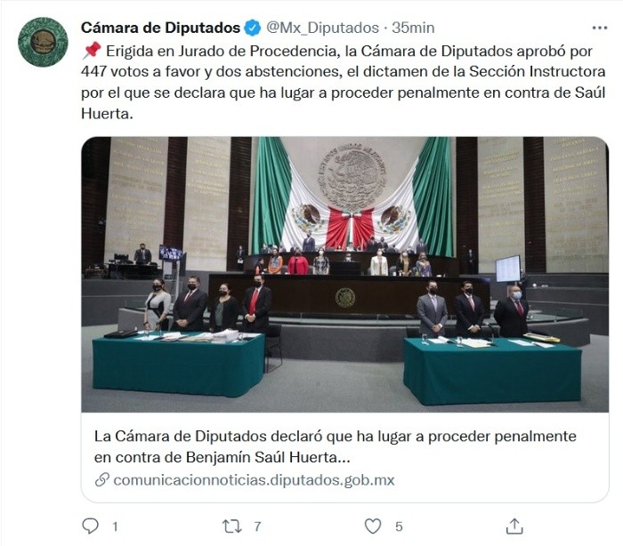 El pleno de la Cámara de Diputados, erigido en jurado de procedencia, quitó el fuero al diputado de Morena, Benjamín Saúl Huerta Corona, para que la Fiscalía General de Justicia de la Ciudad de México (FGJCDMX) pueda proceder en su contra por la presunta comisión del delito de abuso sexual.En un acto en el que no estuvo presente el acusado, se avaló el dictamen de la Sección Instructora por 447 votos a favor, así como dos abstenciones por parte de los morenistas Agustín García Rubio y Paola Tenorio Adame.Al inicio del juicio, Laura Angelina Borbolla Moreno, coordinadora general de Investigación de delitos de género y Atención a Víctimas de la Fiscalía General de Justicia de la Ciudad de México (FGJCDMX), aseguró que existen pruebas legales, contundentes, sólidas y científicas, para quitar el fuero a Saúl Huerta.Entre ellas, destacó, cuentan con estudios de genética forense "con resultados positivos en amilasa salival y obtención de perfiles genéticos en prenda íntima de la víctima", además de pruebas en materia química "identificando la presencia de etanol en la muestra biológica recabada a la víctima".La funcionaria capitalina recordó que Huerta Corona enfrenta dos denuncias por abuso sexual, el primero sobre un caso ocurrido el 30 de julio de 2019 en contra de un adulto mayor de 18 años, y el segundo el 21 de abril de 2021 contra un menor.En ambos episodios, señaló, el inculpado "aprovechó la relación de confianza que generó con las víctimas, refiriendo a los padres de los ofendidos que cuidaría de ellos, y la del encargo como diputado federal ya que les ofreció que lo acompañaran a la ciudad de México con el pretexto de que conocieran este recinto".Borbolla Moreno agregó que también cuentan con pruebas en materia de psicología que permiten establecer que las víctimas presentan sintomatología asociada en violencia sexual relacionada a los hechos que se investigan, incomodidad, sospecha, temor a represalias, culpa, impotencia, enojo, recuerdos recurrentes, evitación, decepción, desconfianza, y asco, entre otras.También se cuenta con entrevistas a las víctimas y a los policías que intervinieron en el momento de los hechos, la identificación del vehículo relacionado con los hechos, y otros dictámenes periciales.La defensa de Saúl Huerta, a cargo de Pavel Arenas Landgrave, aseguró que la acción presentada por la FJGCDMX carece de legitimidad, en virtud de que se violentó el debido proceso en contra del diputado Huerta Corona."Todo lo que ahí se derive, por aberrantes que pudieran ser los elementos del tipo que se están imputando, tienen que tener un principio constitucional del debido proceso, se debe garantizar que todo este proceso inicial se realizó conforme a la ley", expresó.Otro de sus abogados, Juan José Salazar Hernández, insistió: "El debate no es si incurrió o no en el delito que se le imputa, no es si hizo o deshizo. Hay elementos de la carpeta que se han filtrado a los medios lo que ha ensuciado el proceso porque han generado un linchamiento mediático en contra de nuestro defenso, eso es violación al principio de la presunción de inocencia".Al defender el dictamen, el diputado de Morena Pablo Gómez Álvarez, presidente de la Sección Instructora, aseguró que el proyecto se apegó al principio de legalidad, sin interés político y sobre la base presentada por el Ministerio Público y la defensa del imputado, por lo que solicitó que "la respuesta moralmente correcta es decir sí a la solicitud".Por su parte, la coordinadora del Partido de la Revolución Democrática (PRD), Verónica Juárez, recordó que México ocupa el primer lugar en abuso en contra de niñas, niños y adolescentes, con 5.4 millones de casos por año de acuerdo con la Organización para la Cooperación y Desarrollo Económico. Señaló que hasta el momento "el actual gobierno no ha sido capaz de garantizar los derechos fundamentales de las y los ciudadanos, principalmente de las niñas y niños", por lo que adelantó que su bancada votaría a favor de desaforar a Huerta Corona.Además de Morena y el PRD, también avalaron el dictamen las bancadas del PRI, PAN, PT, PES, y MC. Tras el desafuero de Huerta, la Fiscalía General de Justicia de la Ciudad de México debe solicitar la captura ante un juez de control, quien judicializará el caso y determinará si procede la orden de captura o no.Rafael Chong Flores, Fiscal Especializado en Combate a la Corrupción de la Ciudad de México, reveló que Mauricio Toledo, diputado federal del Partido del Trabajo (PT) acusado de enriquecimiento ilícito, abandonó el país desde el pasado 26 de julio."Tenemos una información de última hora por parte de las autoridades migratorias, de que el diputado Mauricio Toledo abandonó desde hace algunos días, el 26 de julio pasado, el territorio nacional con destino a la República de Chile", señaló al rendir su declaración ante la Cámara de Diputados, cuyo pleno está discutiendo el desafuero del legislador petista.Chong Flores aseveró que la salida de México del legislador capitalino, "deja una sombra de duda de su disposición de llegar a la verdad"."Por ello le hacemos un llamado a que regrese de inmediato al país y se presente ante la autoridad judicial, un servidor público honesto no huye ni se esconde", solicitó.Si te interesó esta noticia y quieres saber más, entonces descarga y descubre INFORMAPlus, la aplicación digital de EL INFORMADOR, en donde tenemos contenidos exclusivos, seleccionados por nuestros editores, para darles una experiencia más completa a los lectores. Si eres suscriptor de EL INFORMADOR tu acceso está incluido, solicítalo al 33 3678-7777Descarga la aplicación y pruébala GRATIS por treinta días.Para iOS: https://apple.co/35jaVgbPara Android: https://bit.ly/3gwVSEVJM