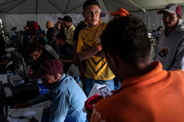 Albañiles, cocineras, pintores, costureras: la caravana migrante que emprendió un maratónico éxodo desde Honduras en busca del sueño americano trae consigo una valiosa mano de obra que la ciudad de Tijuana, la última escala antes de Estados Unidos, quiere aprovechar en su próspera industria.Bajo una carpa blanca colocada cerca de su hacinado albergue en un barrio desfavorecido de Tijuana, cientos de migrantes hacían fila para entrar a una "feria del empleo" organizada expresamente para los miles de integrantes de la caravana.Demostrando una fuerza y determinación de hierro, estos centroamericanos recorrieron a pie o en "ride", durante más de un mes, unos cuatro mil 400 km desde San Pedro Sula hasta la fronteriza Tijuana."Son gente muy fuerte, mano de obra muy valiosa para nuestra industria", dijo Nayla Rangel, del Servicio Nacional de Empleo y a cargo de la coordinación de la feria que durará un mes.En este espacio se reúnen las empresas para ofrecer sus vacantes y entrevistar a los centroamericanos, así como autoridades migratorias y agentes de la Comisión Mexicana de Ayuda a Refugiados (COMAR) para regularizar su estancia y darles acceso a la seguridad social."Lo que se busca es darles una visa por razones humanitarias mientras se define su situación migratoria para que tengan un permiso de trabajo", explicó Rangel.Unos tres mil migrantes de la caravana se encuentran en Tijuana, la inmensa mayoría albergados en un refugio que las autoridades improvisaron en un centro deportivo con carpas y colchonetas a la intemperie.Y más de mil migrantes de esta caravana que quedaron rezagados en Mexicali caminaban este martes hacia Tijuana, desafiando lo agreste del desértico camino."Se busca obrero", dice un anuncio de papel que Wilmar Correa trae en las manos mientras hace fila en la feria.Este hondureño de 27 años estudió para maestro, pero nunca pudo ejercer por la falta de oportunidades y la violencia en su país.Lejos de los libros, está dispuesto a trabajar "de lo que sea" en la próspera industria de la frontera mexicano-estadounidense.Al igual que muchas ciudades limítrofes, el gran motor de la economía en Tijuana es la industria manufacturera, sobre todo en los sectores aeroespacial, médico y electrónico.Hacia el sur, en las magníficas playas de Baja California florecen los restaurantes y hoteles enfocados al turismo internacional.Con un comercio bilateral que asciende a más de 500 mil millones de dólares anuales, México envía más del 80% de sus exportaciones a Estados Unidos, su principal socio comercial.En la feria del empleo para migrantes "estamos ofreciendo entre siete mil y 10 mil empleos para la industria y otras actividades productivas como restaurantes", asegura Salvador Díaz, presidente de la local Asociación de Industriales.Todos ganan en este negocio: los migrantes obtienen un empleo legal y los empresarios mano de obra deducible de impuestos, explica.Por mil 800 pesos semanales, Cesar Elvir, quiere trabajar como pintor en una fábrica. Este hondureño de 20 años que viaja con su esposa y dos hijos, ya pasó las primeras entrevistas y espera que la empresa le llame a su celular para confirmarle la plaza."Se mira bien. Mi meta en sí no es Tijuana, pero mientras espero mis otras oportunidades, temporalmente me tocaría esperarme aquí un tiempo", dice sonriente bajo su gorro de invierno.La multitudinaria caravana centroamericana parece un "déjà vu" para Tijuana, que hace dos años vio llegar a miles de haitianos. Muchos de ellos cruzaron a Estados Unidos, pero muchos otros echaron raíces en México."El caso de los haitianos fue muy positivo. Traemos unos dos mil 500 trabajando" legalmente, dice Díaz."Lo más importante es que se fusionaron de manera correcta con la sociedad, no hemos tenido problemas con ellos. Eso mismo queremos lograr con los centroamericanos", añadió.La caravana migrante provocó una violenta protesta por parte de cientos de habitantes de Tijuana que consideran que muchos son sucios, agresivos, y un peligro para la ciudad.Pero en realidad, la inmensa mayoría son familias con buenas intenciones y "nos dicen que ellos mismos nos pueden ayudar a identificar a esas personas (delincuentes) y ponerlas a disposición de las autoridades para retornarlas a su país", comentó Díaz.En Honduras "yo cuidaba bebés, limpiaba casas, lavaba ajeno... lo que salía", dice Karla Vallecío, 34 años, tras llenar un formato con sus datos para conseguir empleo."Si consigo trabajo lo primero que haría es conseguir un cuartito para quedarme aquí" en Tijuana, dice, al explicar que el proceso legal para pedir asilo en Estados Unidos es más lento y engorroso de lo que pensaba.Familiares en Estados Unidos "me han dicho que me espere a que calmen las aguas, que pase todo este relajo a ver si ellos me ayudan" a pasar legalmente, explica.CE