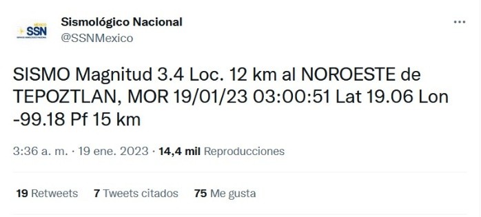 La madrugada de este jueves se registró un "mini sismo" de 3.4 grados de magnitud con epicentro en Tepoztlán, Morelos que, al parecer, fue perceptible en algunas zonas del sur de la Ciudad de México.De acuerdo con información del Sismológico Nacional, el sismo de la madrugada de este jueves ocurrió a 12 kilómetros al noreste de Tepoztlán, Morelos y tuvo una magnitud de 3.4 grados.Pese a que fue de baja intensidad, lo cual no amerita la activación de la alerta sísmica, varios usuarios en redes sociales indicaron que fue perceptible en algunas zonas del sur de la Ciudad de México.Un sismo anterior al de la madrugada ocurrió a las 19:13 del miércoles y tuvo una magnitud de 4.0 grados, con epicentro a 112 kilómetros al suroeste de Ciudad Hidalgo en Chiapas. De este evento no hay reportes sobre si fue perceptible o no.El director General del Centro de Instrumentación y Registro Sísmico (Cires), Juan Manuel Espinosa Aranda, explicó que en la Ciudad de México los sismos de escasa o baja intensidad están asociados a seis fallas geológicas: Chiquihuite, Santa Catarina, Falla Santa Fe, Ayotuzco, Tenango y La Pera."Debemos recordar que a mayor cercanía con el epicentro, las ondas sísmicas se atenúan y a mayor distancia el sismo se siente más fuerte, como fue el caso de estos eventos", abundó el especialista.JM
