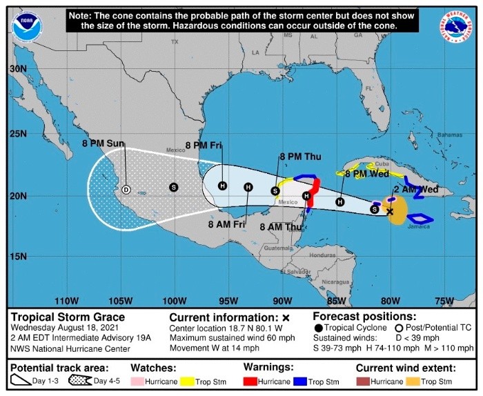 ''Grace'' se convirtió en huracán este miércoles, mientras avanza por el Caribe hacia las costas de México, donde destinos turísticos como Cancún, la Riviera Maya y Tulum se preparan para la llegada del fenómeno.Según el Centro Nacional de Huracanes de Estados Unidos, a las 15:00 horas GMT Grace registraba vientos sostenidos de 120 km/h y se encontraba a 105 km de las Islas Caimán y a 560 km de Tulum."Se espera que 'Grace' toque tierra en la península de Yucatán el jueves por la mañana, y se mueva sobre el suroeste del Golfo de México temprano el viernes", detalló el NHC.El organismo prevé que el huracán se fortalezca aún más antes de que su centro alcance el este de México.El estado de Quintana Roo, con una amplia costa sobre el Caribe y que alberga los mayores destinos turísticos del país, se preparaba para recibir al fenómeno, que se espera toque tierra por las costas de Tulum, donde se encuentra un sitio arqueológico maya.El gobierno estatal resguardará a la población ubicada en al menos cinco comunidades costeras por lo que el sistema estatal de Protección Civil ya instaló 85 albergues para recibir a la población más vulnerable al impacto del fenómeno.Se estima que el paso de ''Grace'' por la península de Yucatán será de unas 18 horas para salir luego al Golfo de México y tocar tierra nuevamente el sábado al sur del estado de Tamaulipas.Sigue leyendo…Si te interesó esta noticia y quieres saber más, entonces descarga y descubre INFORMAPlus, la aplicación digital de EL INFORMADOR, en donde tenemos contenidos exclusivos, seleccionados por nuestros editores, para darles una experiencia más completa a los lectores.Descarga la aplicación y pruébala GRATIS por treinta días.Si eres suscriptor de EL INFORMADOR tu acceso está incluido, solicítalo al 33 3678-7777OF