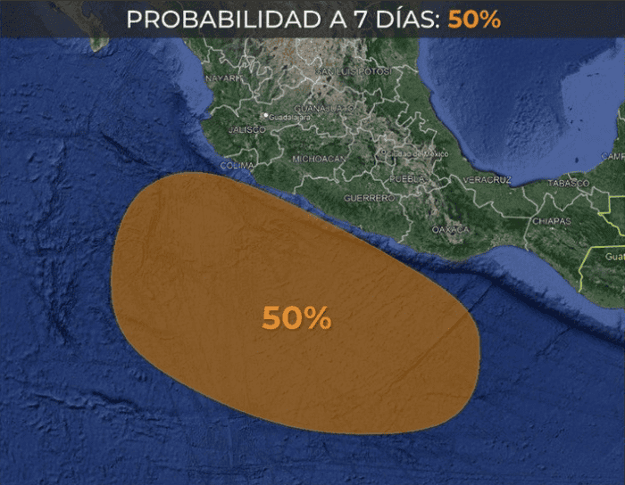Nuevamente, un potencial ciclónico amenaza con aparecer en la costa del Pacífico mexicano y se convertiría eventualmente en la tormenta tropical "Norma", según informo en un aviso el Servicio Meteorológico Nacional (SMN), fuente climática oficial del Gobierno de México.El SMN mencionó que continúa la vigilancia sobre una posible zona de baja presión que este mediodía incrementó a 50% su probabilidad para desarrollo. Así lo informó:"Se prevé la formación de una zona de baja presión al sur de las costas de Michoacán, Guerrero y Oaxaca. Incrementa a 50% su probabilidad para desarrollo ciclónico en 7 días".Esta mañana del 13 de octubre, el fenómeno tenía una probabilidad de 40 por ciento, por lo que en cuestión de horas subió en 10% el riesgo.Lo importante de este fenómeno natural es que, de continuar su evolución, se podría desarrollar un nuevo ciclón tropical que llevaría el nombre de "Norma"."Norma" es el siguiente ciclón tropical de la temporada 2023 que se desarrollaría en el Pacífico, de una estimación de entre 16 y 22.Hasta ahora, han existido 5 tormentas tropicales, 2 huracanes con categoría 1 ó 2, y 6 huracanes categorías 3, 4 ó 5; siendo el mayor con categoría 4 "Lidia", que impactó en las costas de Jalisco y Nayarit, y que además de los daños materiales que ocasionó, dejó 2 víctimas mortales, una en cada estado.Con información Servicio Meteorológico NacionalOA