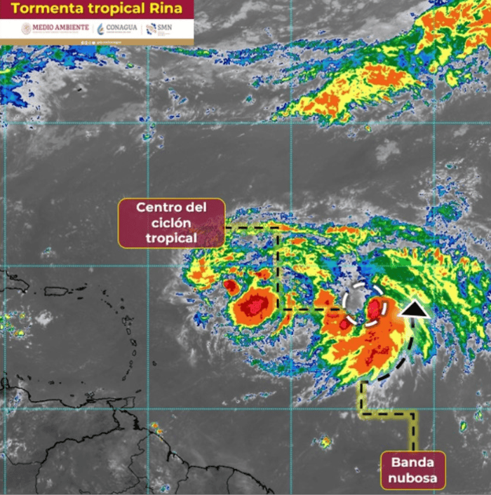Ayer se formó la tormenta tropical "Rina" sobre el Océano Atlántico Central, muy lejos de México, según informó el Servicio Meteorológico Nacional (SMN), fuente oficial del Gobierno de México en materia climática.Hasta anoche, "Rina" se encontraba a mil 915 km al este de las Antillas Menores y a 4 mil 400 km al este de las costas de Quintana Roo, aunque debido a su distancia y trayectoria, el sistema no representa peligro para territorio mexicano. Se espera que el sistema mantenga su categoría como tormenta tropical, por lo menos, hasta el martes 03 de octubre, cuando se encuentre aún más lejos del territorio nacional, a 2 mil 960 km al este-noreste de Cancún, Quintana Roo.El pronóstico para la península de Yucatán es que se espera cielo nublado la mayor parte del día con probabilidad de lluvias y chubascos por la mañana, además de posibles bancos de niebla. Por la tarde, lluvias puntuales muy fuertes con descargas eléctricas en Campeche, Yucatán y Quintana Roo, mismas que podrían generar aumento en los niveles de ríos y arroyos e inundaciones en Campeche, así como encharcamientos e inundaciones en Yucatán y Quintana Roo. Ambiente cálido durante la mañana y muy caluroso en la tarde. Viento de dirección variable de 10 a 25 km/h con rachas de hasta 30 a 50 km/h en costas de la región y oleaje de 1 a 2 metros de altura.Con información del Servicio Meteorológico NacionalOA