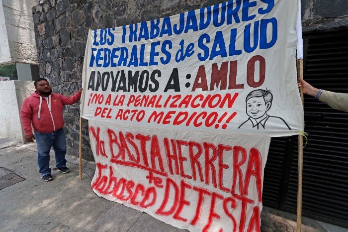 Con la promesa de que Andrés Manuel López Obrador intervendría en su caso, trabajadores del sector salud de Tabasco se retiraron del domicilio del virtual presidente electo en Tlalpan, luego de tres horas de protesta.Los tabasqueños levantaron las pancartas que colocaron en la entrada del conjunto habitacional donde vive López Obrador. Carlos Moheno, uno de los trabajadores que se manifestaron, explicó que fueron atendidos por Héctor García, uno de los colaboradores de López Obrador, quien les ofreció una respuesta a su demanda para que puedan participar en la elección de dirigente sindical a finales de mes."Nos dijo que él va a intervenir (López Obrador), que él va a dar las indicaciones en el Estado, a quien corresponda, imagino que al virtual gobernador, para que sepa esa problemática qué hay en los sindicatos que pertenecen a la FSTSE".Señaló que esperan que una comisión de trabajadores que pertenecen a la sección 48 tenga un encuentro con el virtual presidente electo para exponer su situación.JB